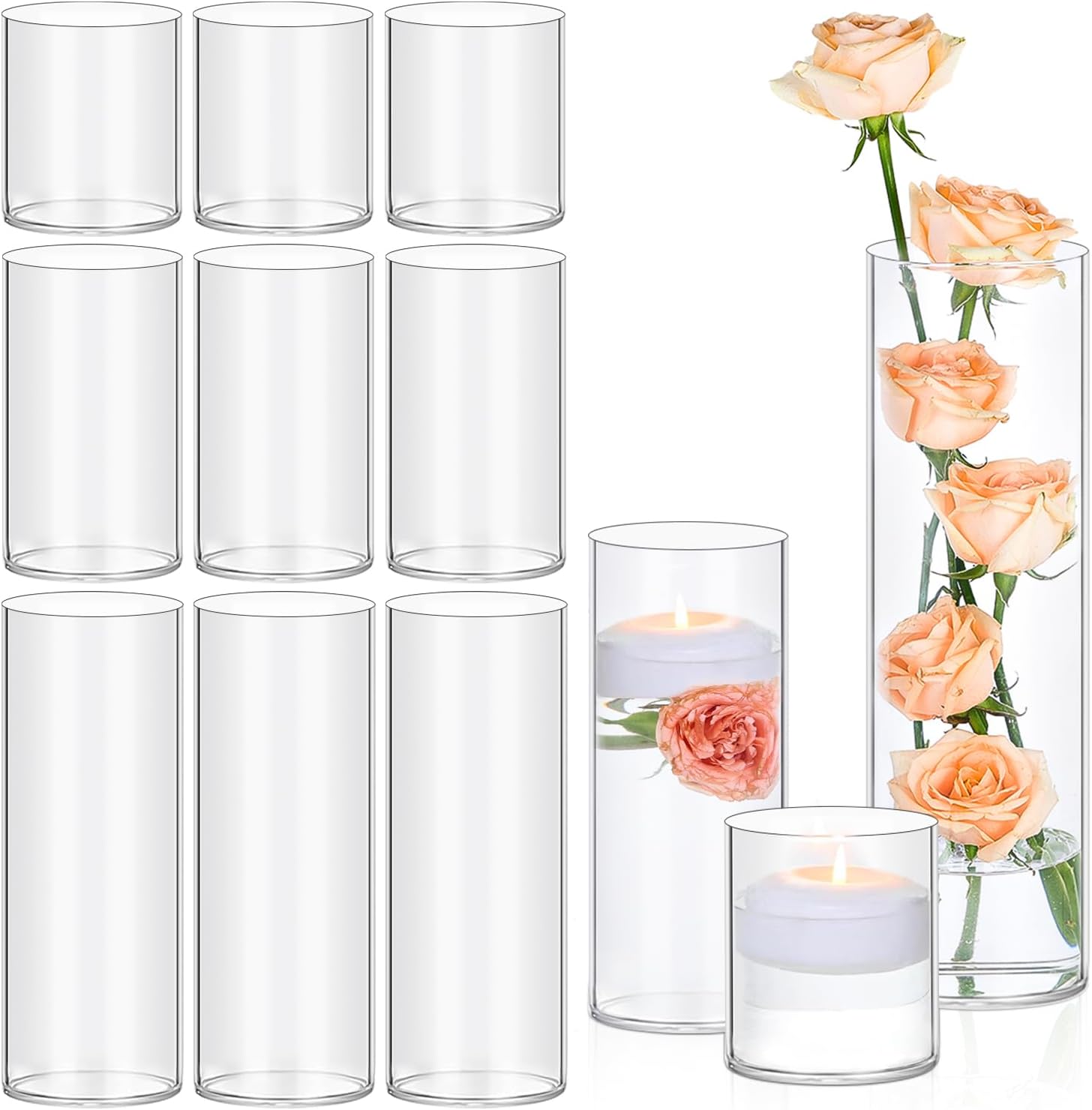 • Various Occasions: These cylinder vases work perfectly as table centerpieces, to make your dining table more beautiful. Despite their commonality, they are highly effective decor for various occasions like restaurants, gardens, weddings, and parties