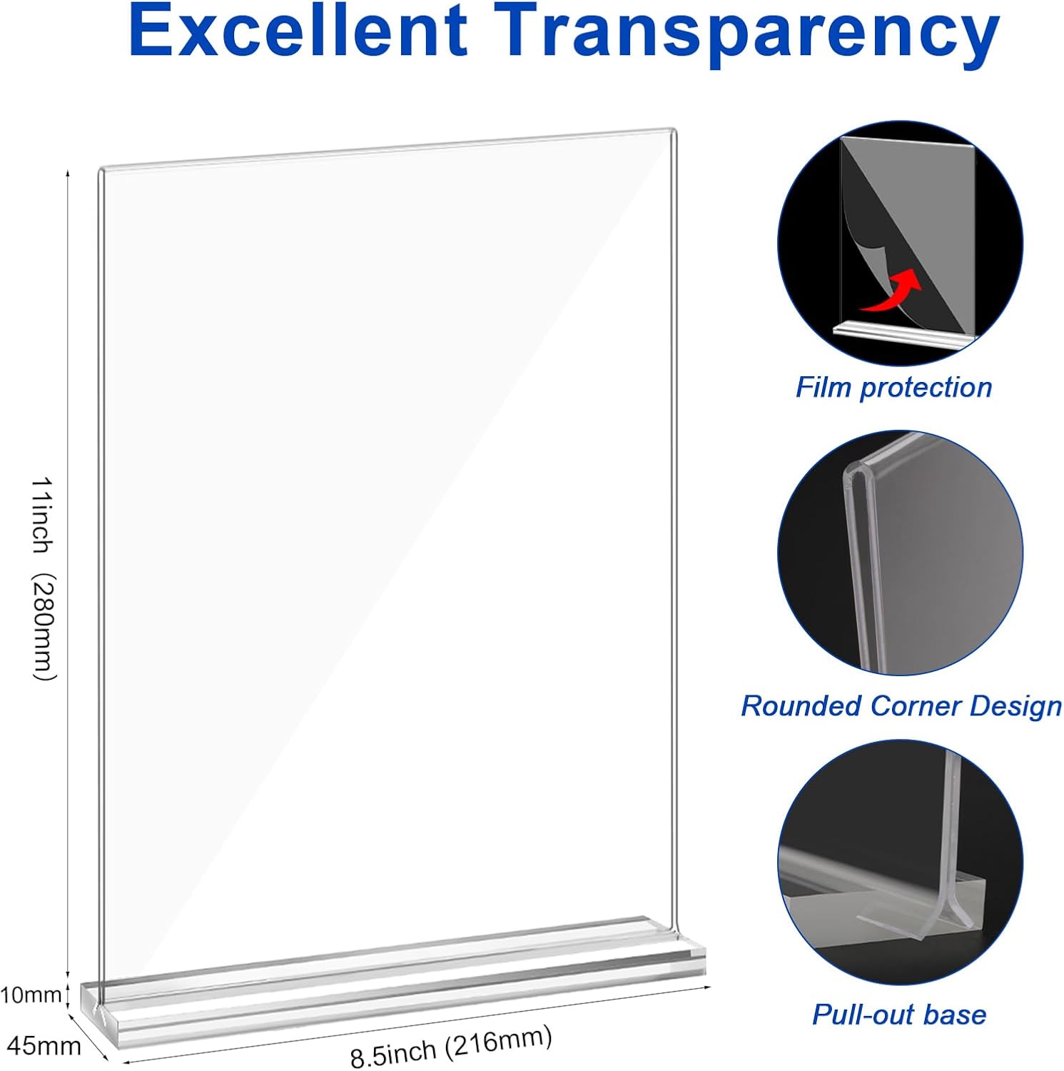Acrylic Sign Holder,Clear Plastic Sign Holder8.5x11 inches Paper Card T Shape Double Sided Display Stand Picture Frame Desktop Table Menu Signs Office,Store, 10 Pack