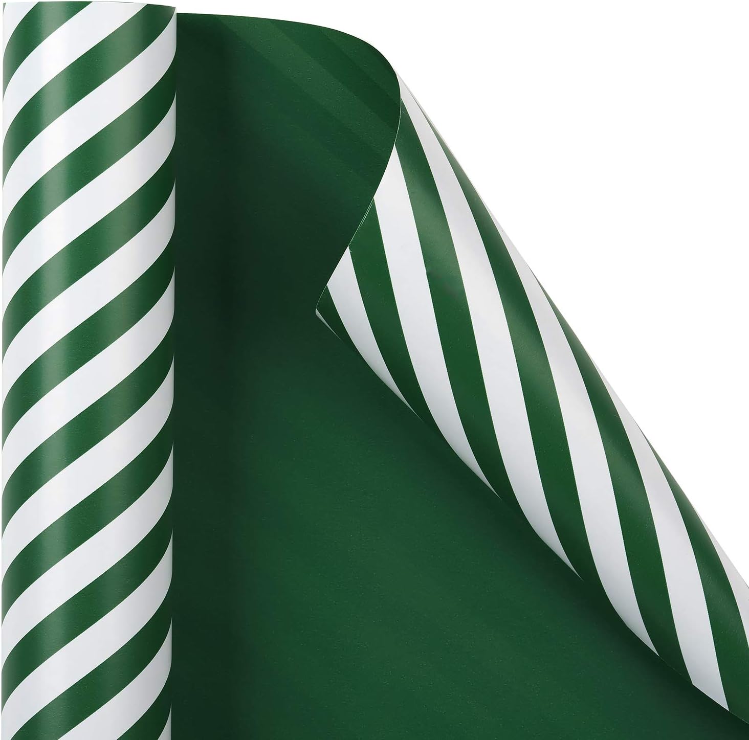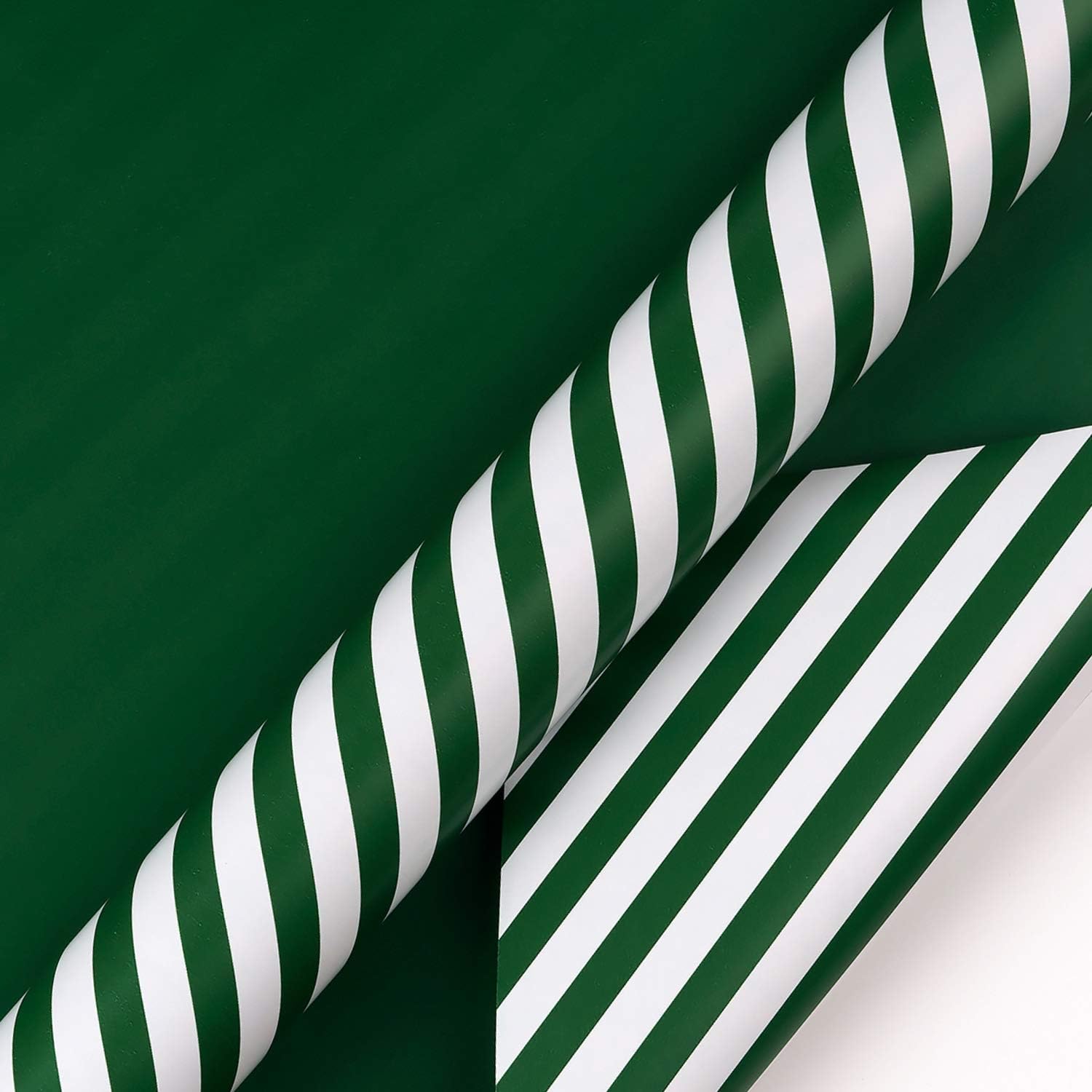 • REVERSIBLE: A solid dark green side and a dark green/white stripe side. Two different classic designs make beautiful and varied gift presentations easy.