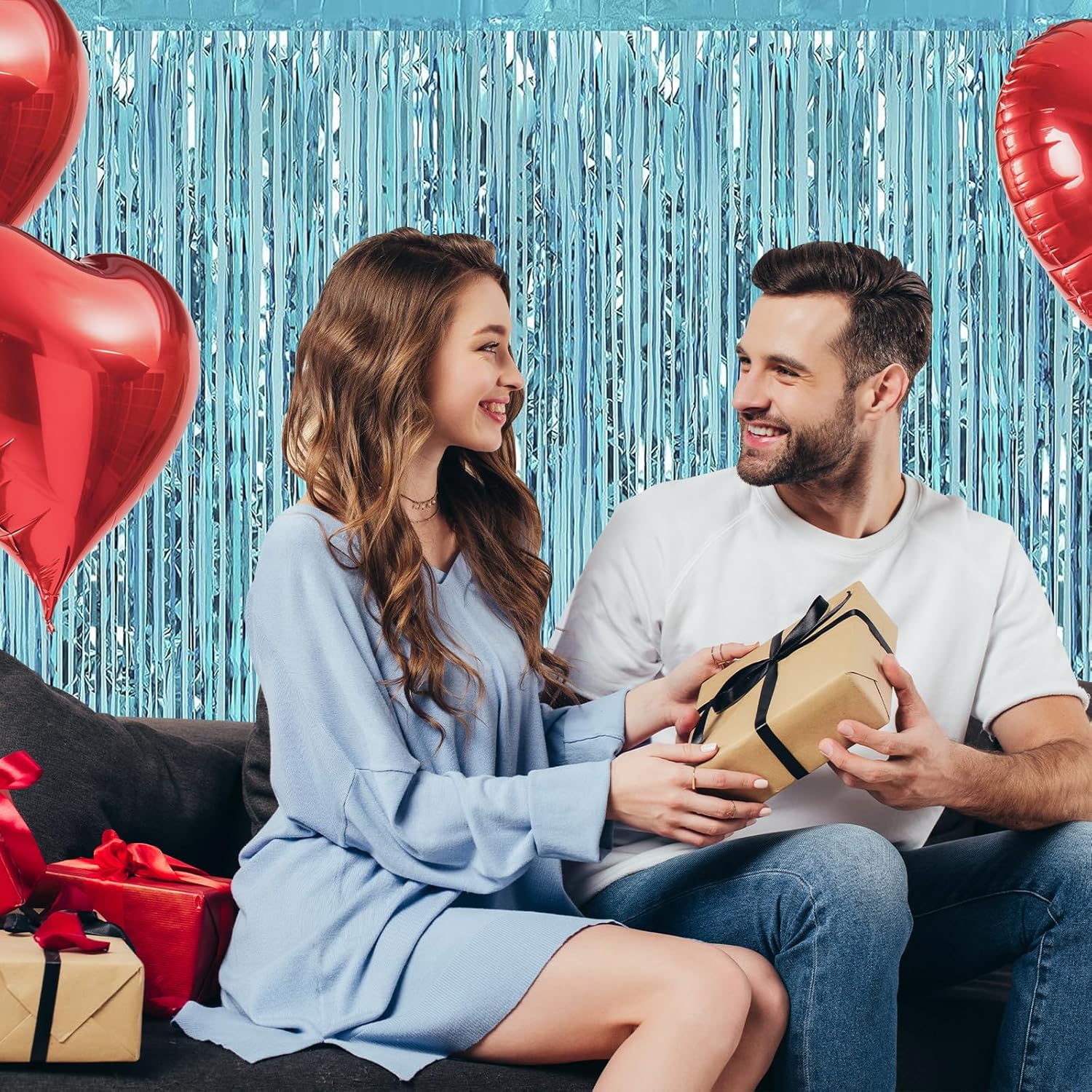 30 Pack Light Blue Foil Fringe Curtain Backdrop, 3.3x8.2 Feet Metallic Tinsel Streamer Curtains Photo Booth Props for Baby Shower/Bachelorette/Graduation/Birthday/Ocean Theme Party Decorations