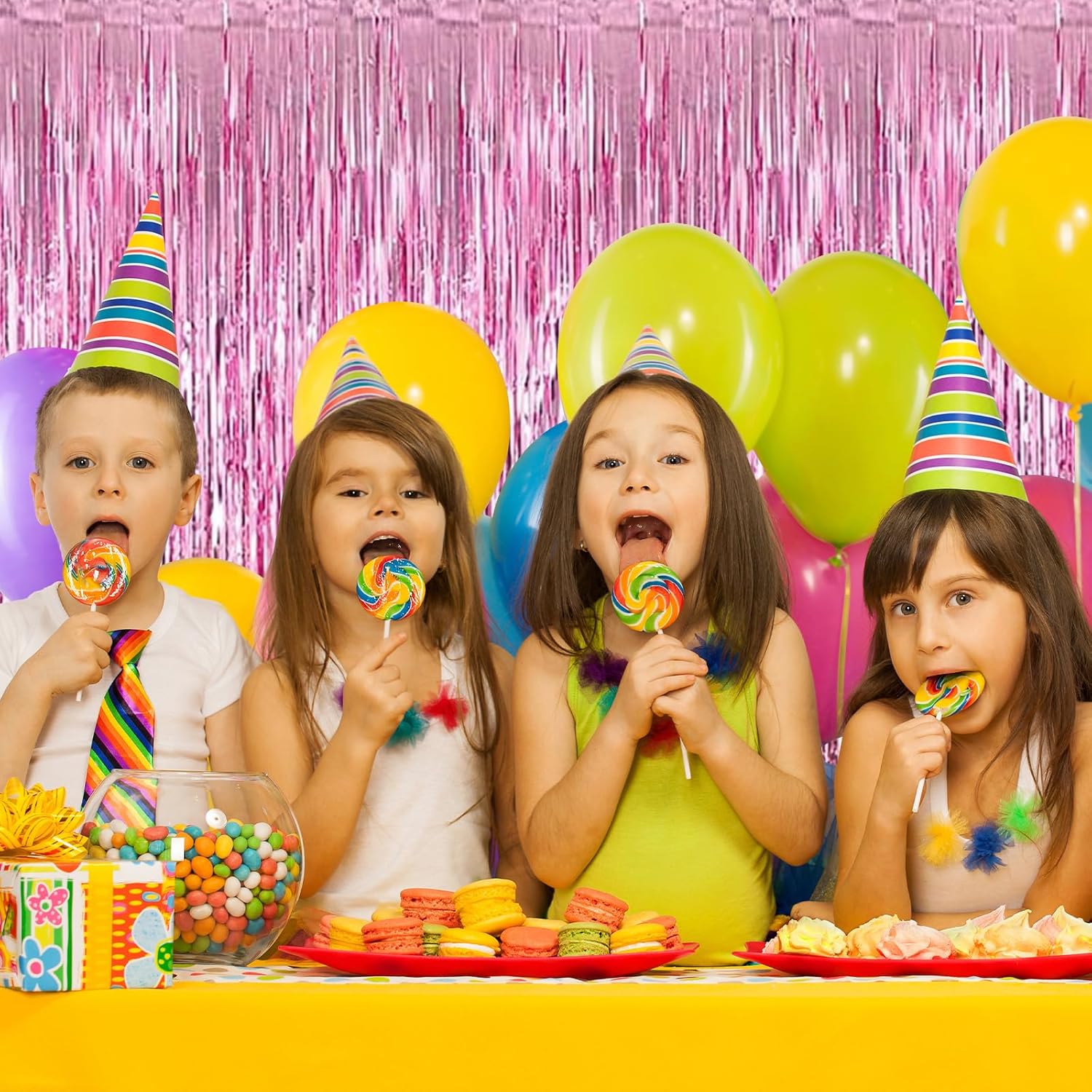 30 Pack Pink Foil Fringe Curtain Backdrop, 3.3x8.2 Feet Metallic Tinsel Streamer Curtains Photo Booth Props for Wedding/Birthday/Baby Shower/Valentine's Day/Princess Themed Party Decorations