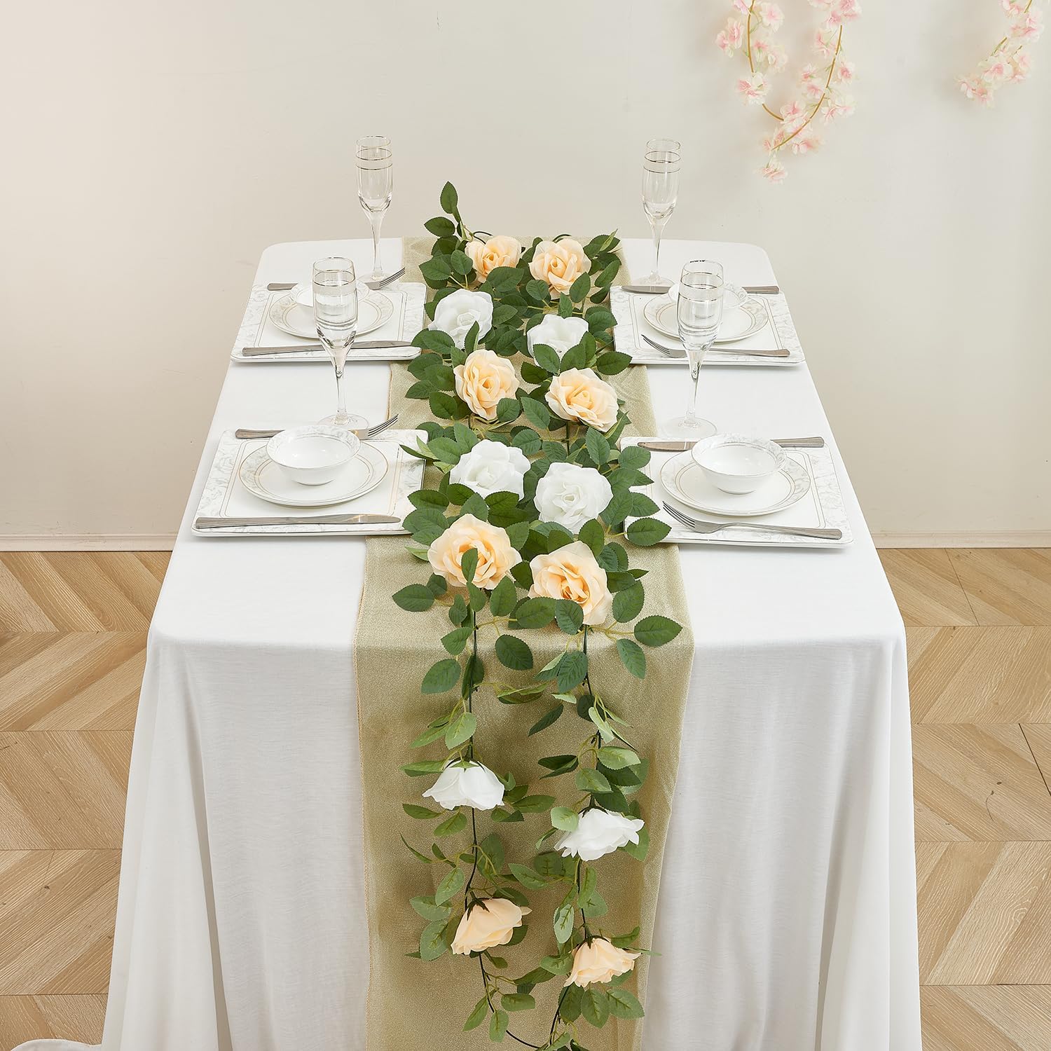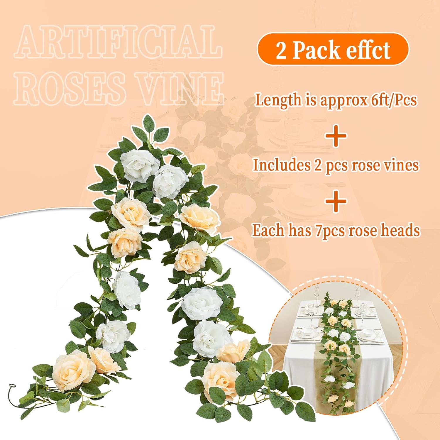 Artificial Rose Garlands Rose Vines Leaves Banners Hanging Floral Garland Fake Rose Flower Vine Wall Decorations, Champagne