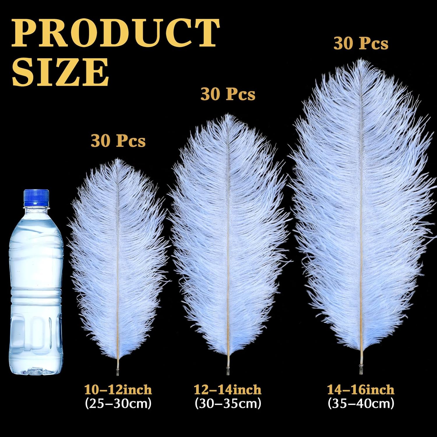 • Package Include: you will get 90 pieces large natural ostrich feathers in 3 different sizes, 14-16 Inch (35-40cm), 12-14 Inch (30-35cm), 10-12 Inch (25-30cm), 30 pieces of each size, enough quantity to meet your DIY usage needs, suitable for making many kinds of handicrafts or table decorations, create a romantic and beautiful atmosphere