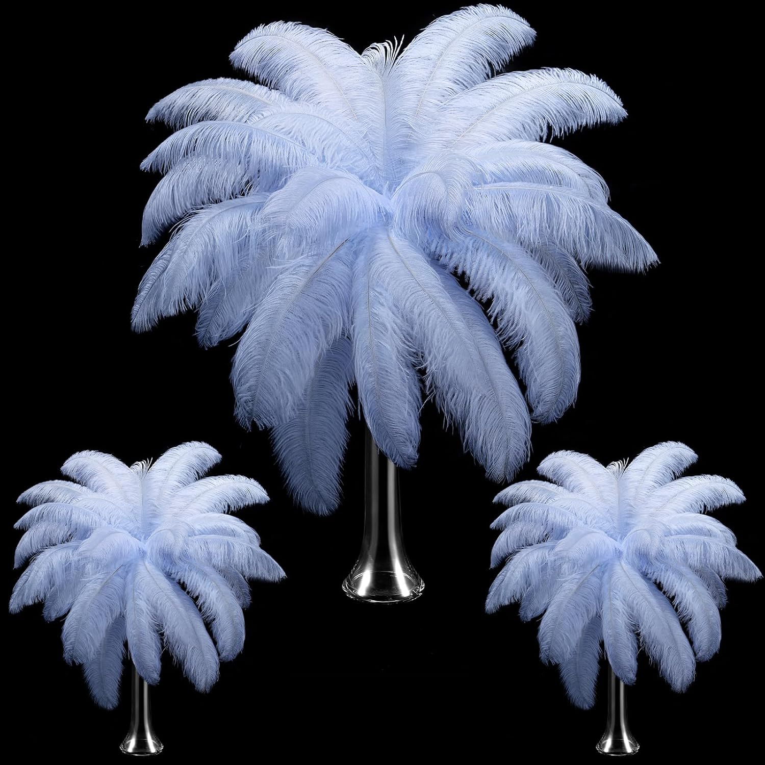 Maitys 90 Pcs Large Natural Ostrich Feathers Bulk 14-16 Inch (35-40cm) 12-14 Inch (30-35cm) 10-12 Inch (25-30cm) Ostrich Feathers Plumes for Centerpieces Wedding(Light Blue)