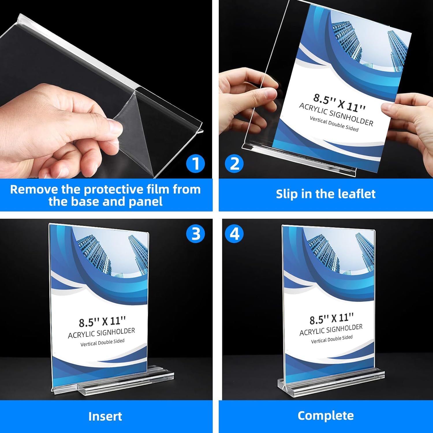 • Premium Quality Acrylic Sign Holder 8.5 x 11'': Made from crystal clear acrylic sheets for exceptional clarity and durability, providing pristine visibility for your signage.