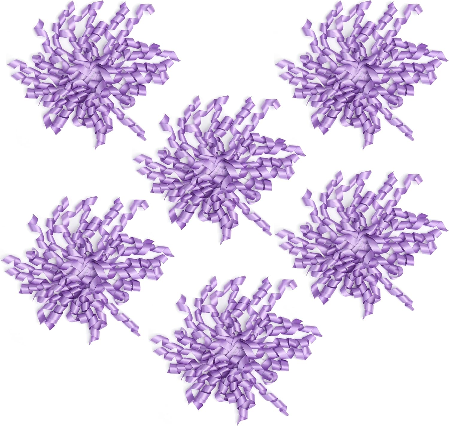 6 Inch Purple Curly Bows for Gift Wrapping Set of 6, Self Adhesive Bows Lilac Gift Bows for Presents, Satin Ribbon Bows for Birthday, Wedding, Christmas, Bridal Shower, Gift Wrap Accessory