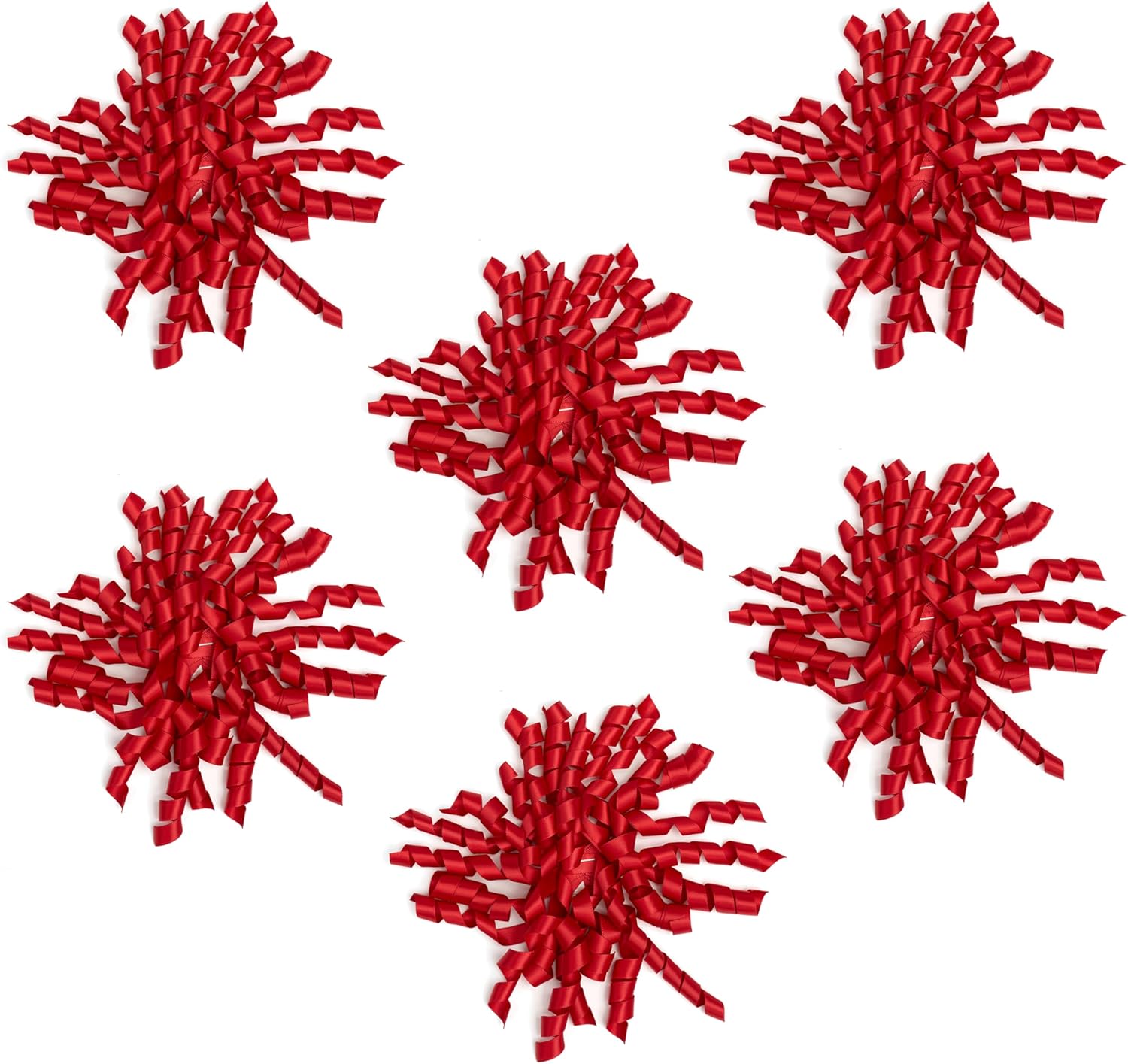 6 Inch Red Curly Bows for Gift Wrapping Set of 6, Self Adhesive Bows Red Gift Bows for Presents, Satin Ribbon Bows for Birthday, Wedding, Christmas, Bridal Shower, Gift Wrap Accessory