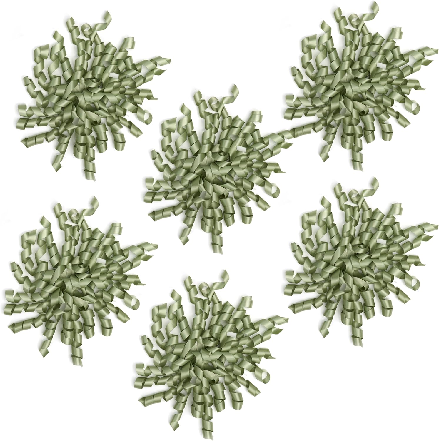 6 Inch Sage Curly Bows for Gift Wrapping Set of 6, Self Adhesive Bows Green Gift Bows for Presents, Satin Ribbon Bows for Birthday, Wedding, Christmas, Bridal Shower, Gift Wrap Accessory