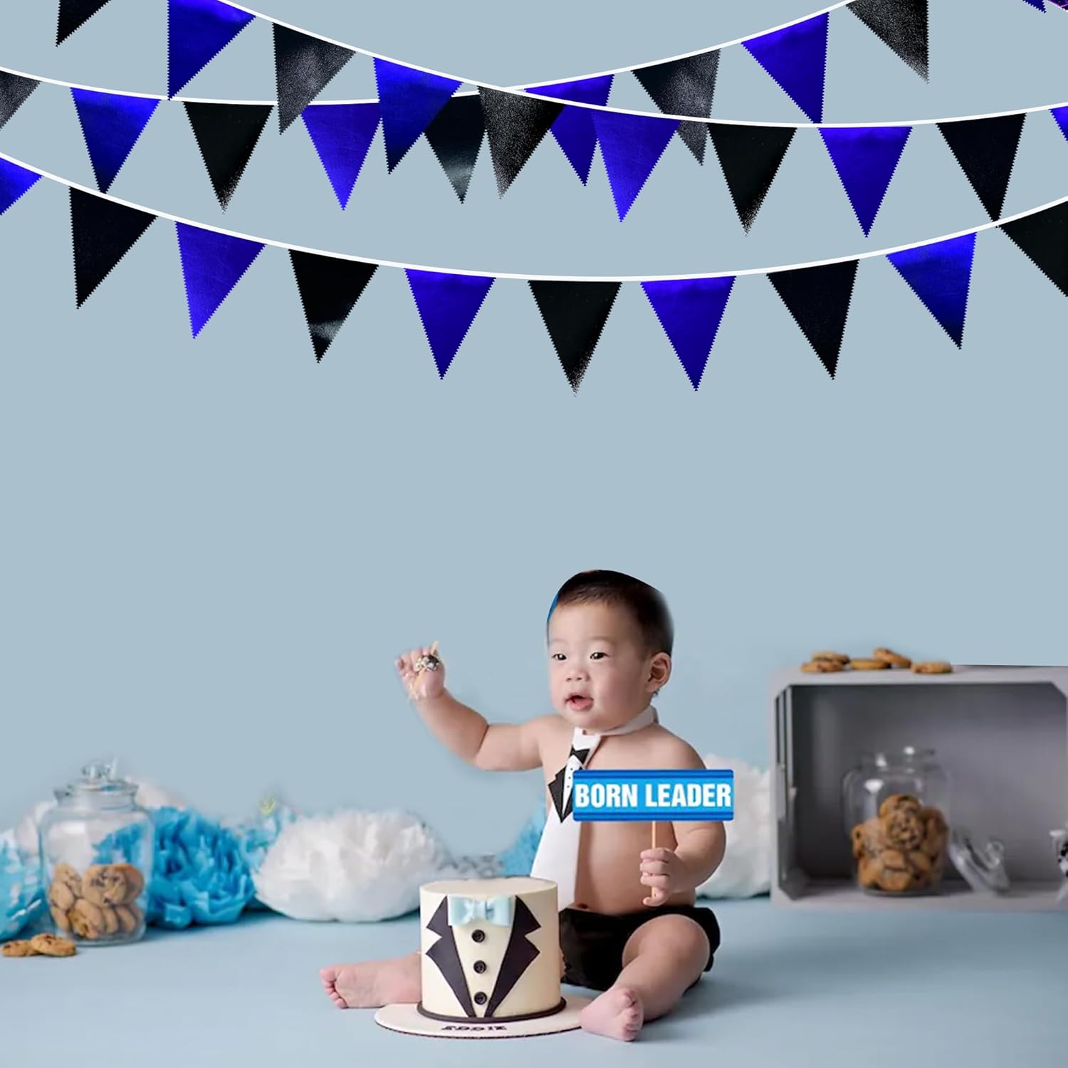 Royal Blue Black Party Decorations Navy Black Metallic Fabric Triangle Pennant Banner Flag Bunting Garland for Graduations Birthday Retirement Wedding Bachelorette Nautical Outdoor Party Supplies