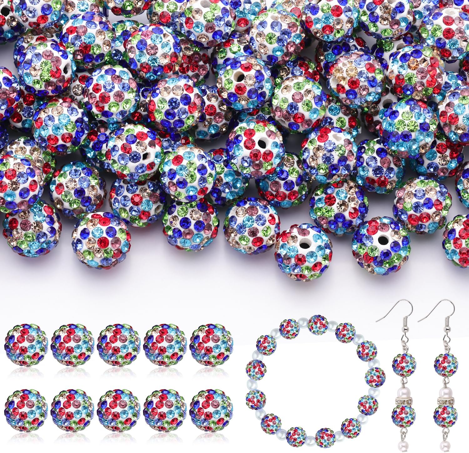 160pcs 10mm Rhinestone Beads for Jewelry Making, White Mixed Shiny Round Disco Ball Beads Bulk, Sparkle Crystal Clay Christmas for Bracelet Baseball Necklace Earring Crafting and DIY