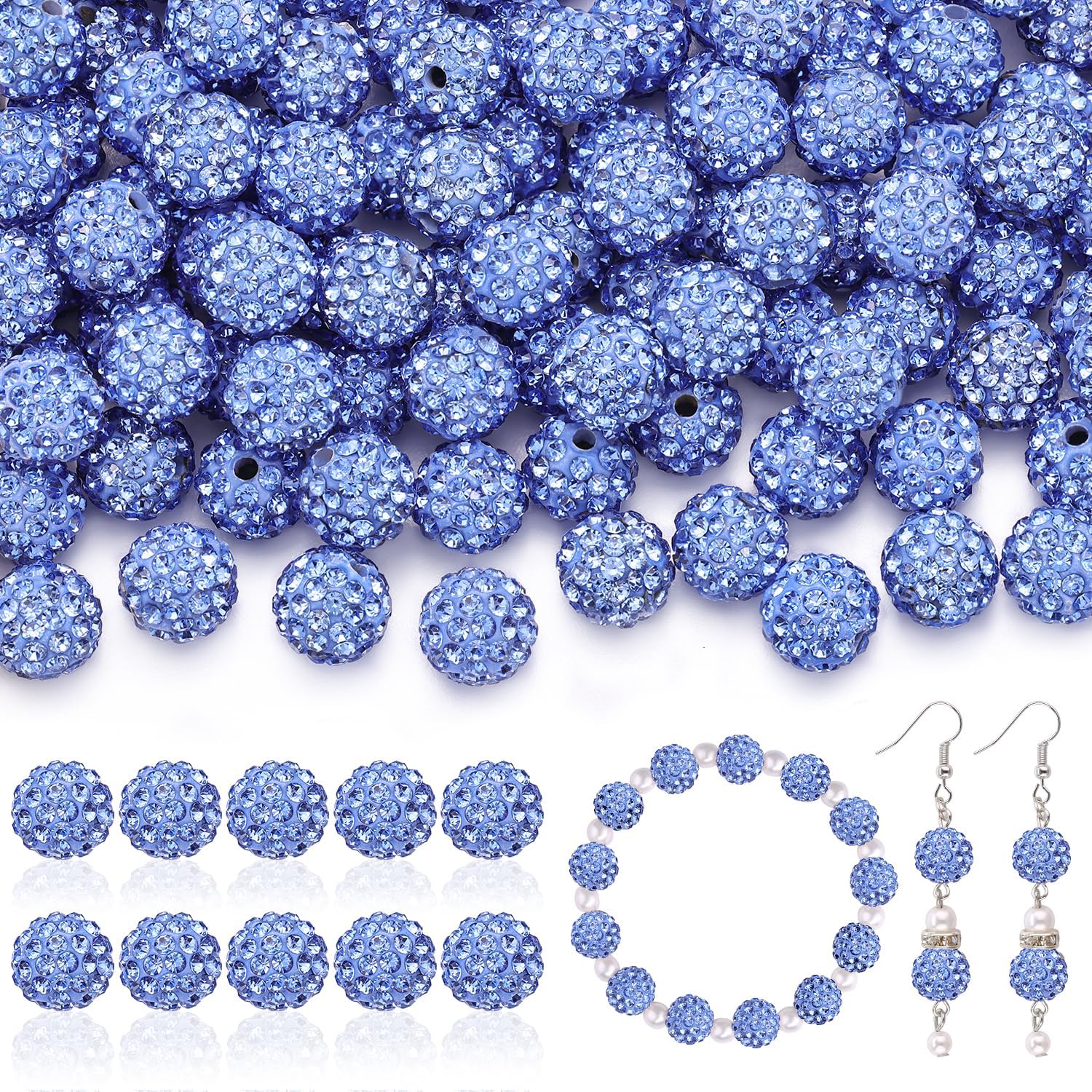 160pcs 10mm Rhinestone Beads for Jewelry Making, Light Blue Shiny Round Disco Ball Beads Bulk, Sparkle Crystal Clay Christmas for Bracelet Baseball Necklace Earring Crafting and DIY