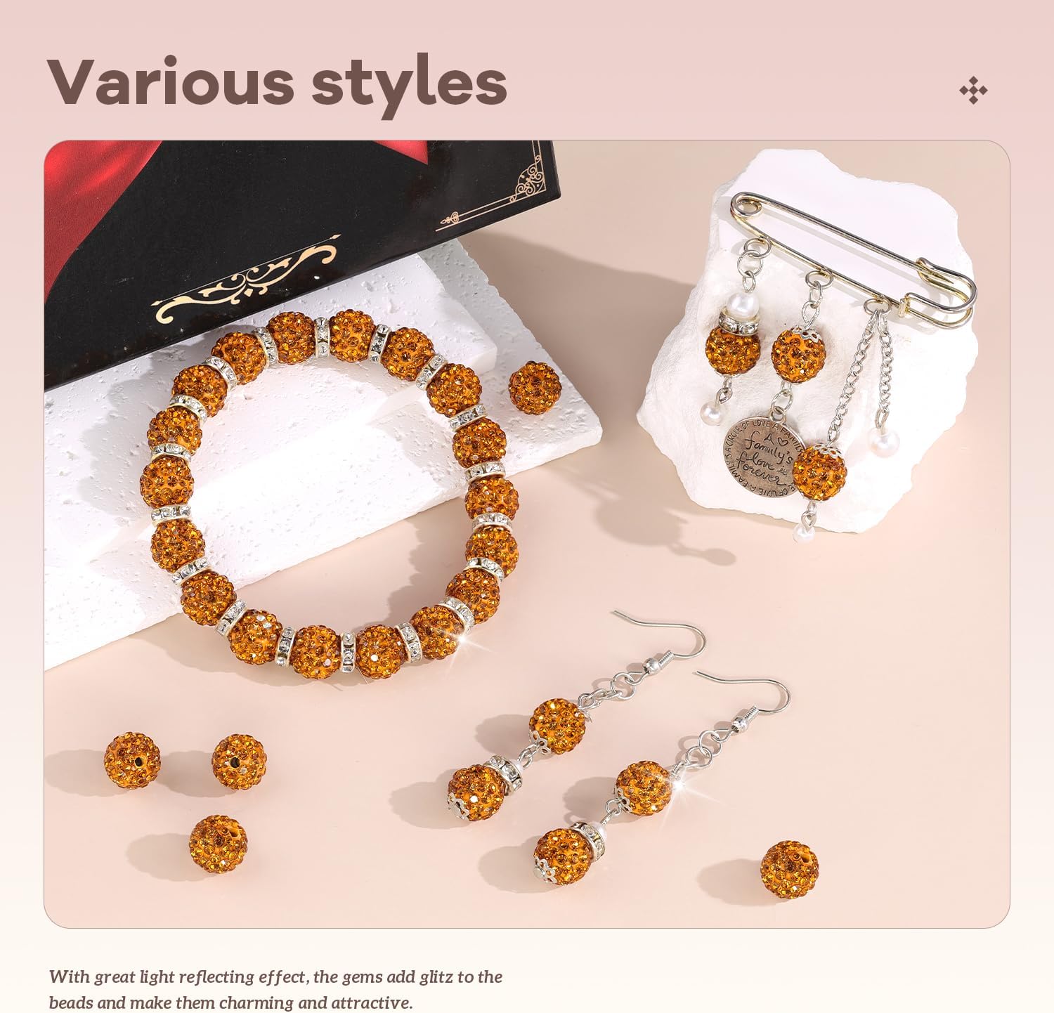 • BLING EFFECT --With great light reflecting effect, the gems add glitz to the beads and make it charming and eye-catching. Our beads are made of polymer clay embedded with glass rhinestones with shining and it's not easy to fall off
