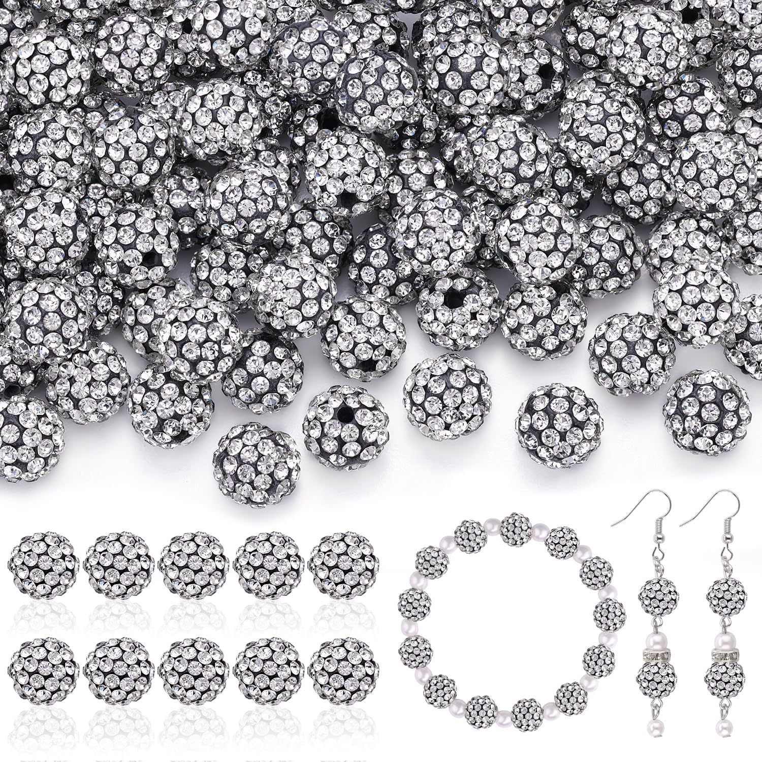 160pcs 10mm Rhinestone Beads for Jewelry Making, Black White Shiny Round Disco Ball Beads Bulk, Sparkle Crystal Clay Christmas for Bracelet Baseball Necklace Earring Crafting and DIY