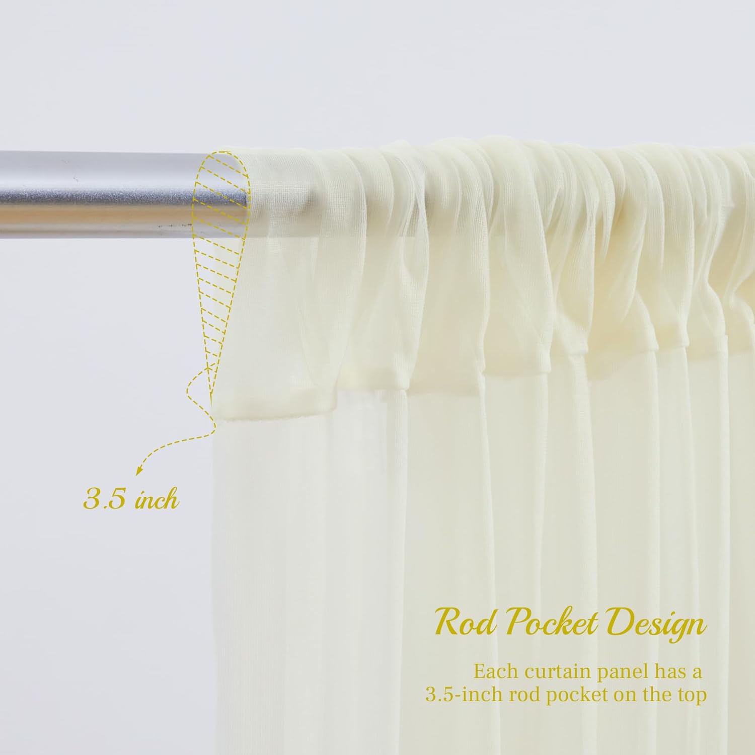• 【Easy Care Sheer Backdrop Drapes】Our ivory sheer backdrop curtain is easy to clean. You can wipe the surface with a damp cloth. It's best to hand wash with warm water or machine wash in gentle cycle with laundry bag,no bleach,lay flat or hang to dry.Can be used over and over again.