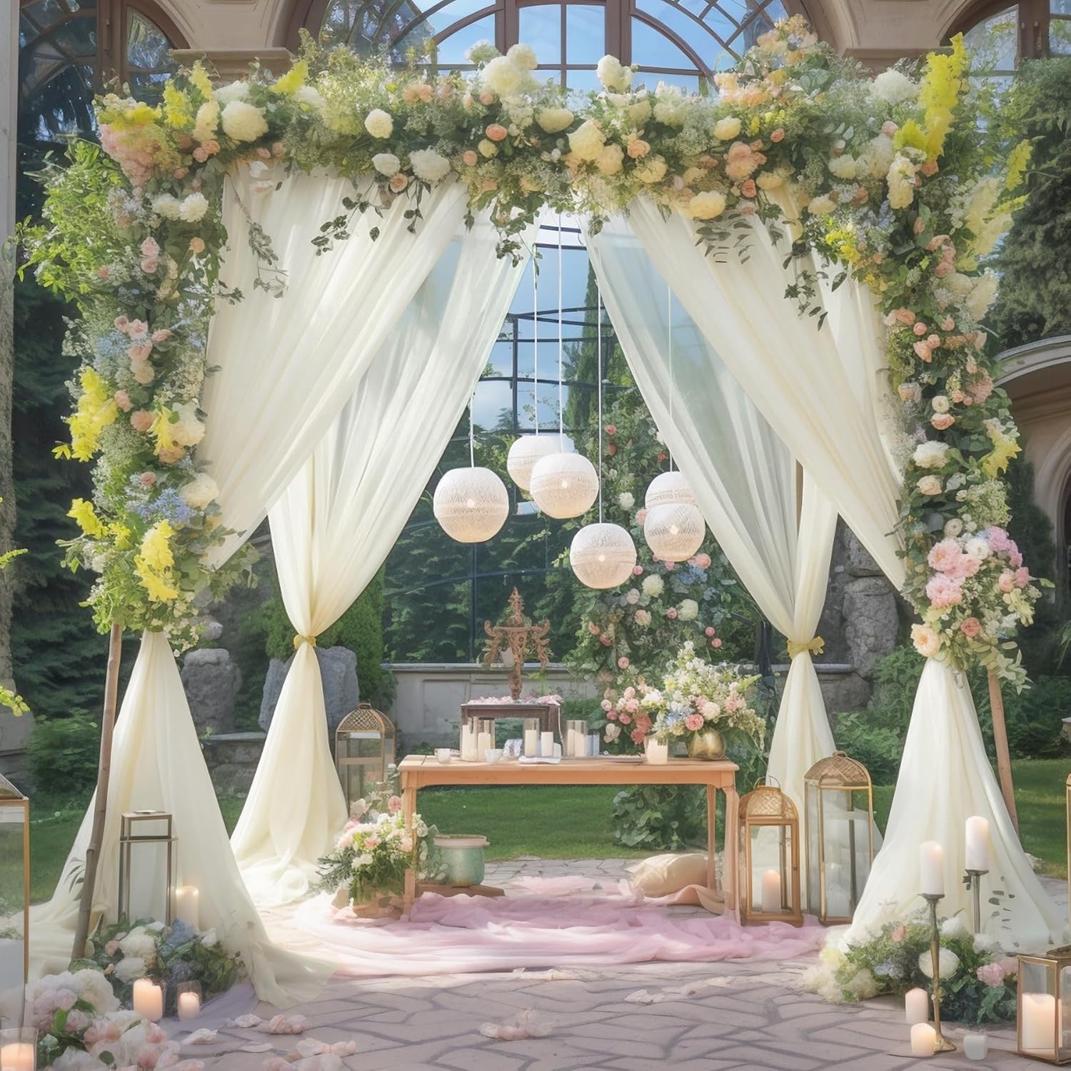• 【Multiple Use Sheer Curtains】Our ivory drapes for backdrop are applicable for any indoor and outdoor occasions. Perfect for wedding arch draping fabric, wedding reception decorations, birthday party curtains, bridal and baby showers, birthdays, candy buffet curtain, dessert table background, trade shows, wedding stage photography, photo booths, ceremony and more.