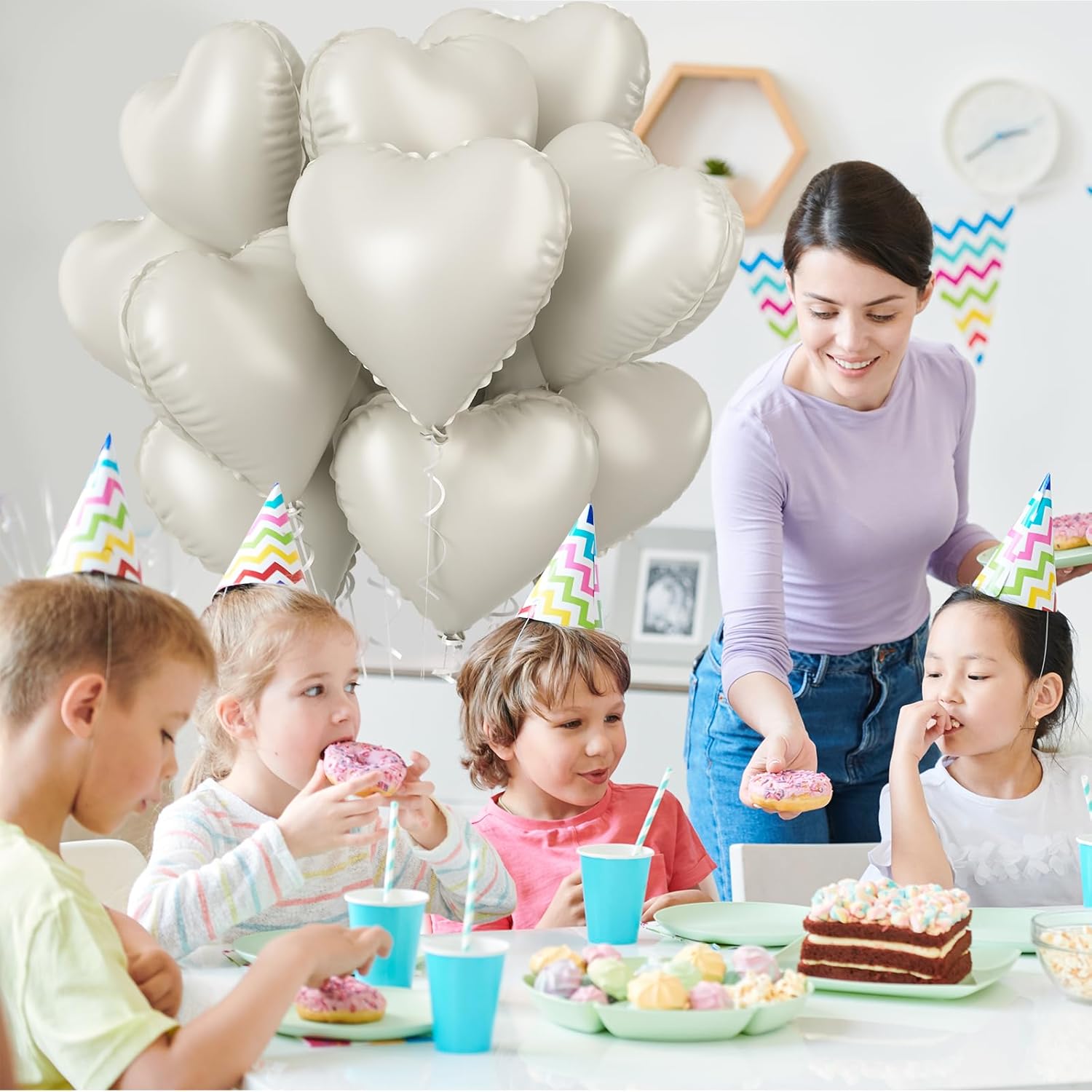 • Cream Heart Balloons: There are 12pcs 18 inch cream heart foil balloons and 1pc ribbons.
