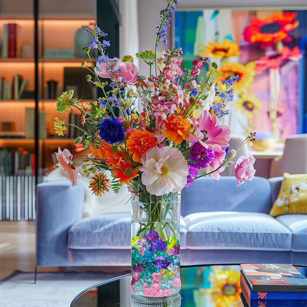 HappyFiller Fiestal Style Multi Colored Fake Ice Rocks Cubes Acrylic Gems Stones for Vase Fillers,Mermaid Birthday Party,Wedding Centerpieces Table Scatters,Floral Arrangement,Home Accents,15 OZ