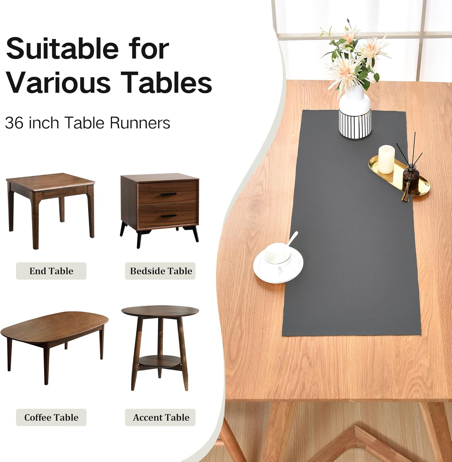 • Serviceable Materials: This grey table runner is made of polyester, which makes them soft, reliable and reusable. In addition, it will not shrink or fade because of washing. Our advanced fabrics and exquisite craftsmanship not only make this table runner quite practical, but also bring it high quality texture.