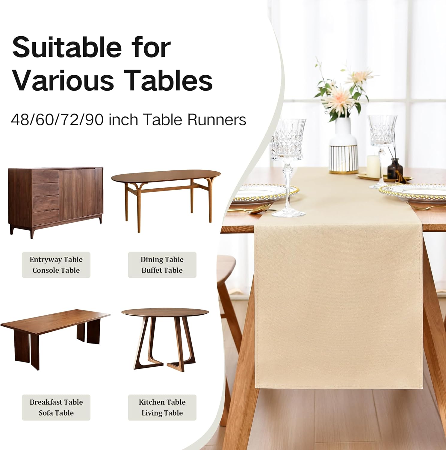 Farmhouse Beige Table Runner Dining Table Runners 72 Inches Long Coffee Table Runner for Dresser Living Room Bedroom Holiday Party Banquet 12X72 Inch