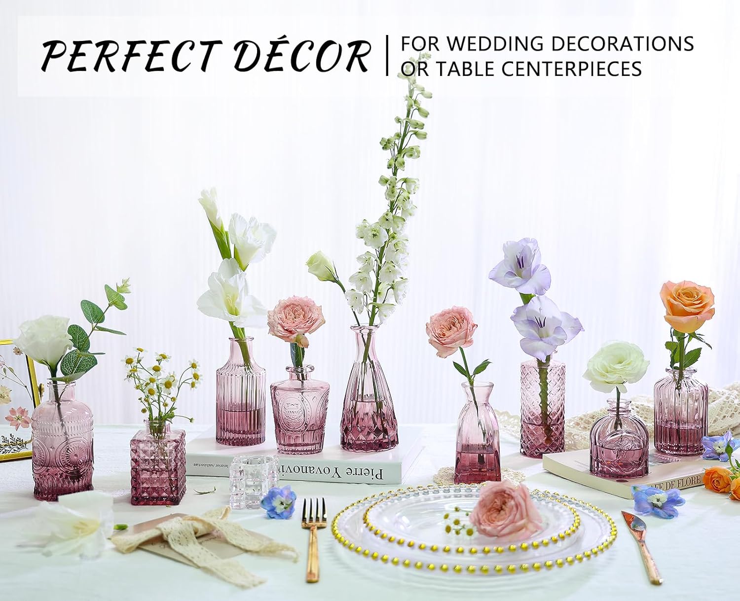 12pcs Glass Bud Vase Set, Small Purple Flower Vases for Centerpieces in Bulk, Mini Vintage Vase for Wedding, Home,Table Decoration