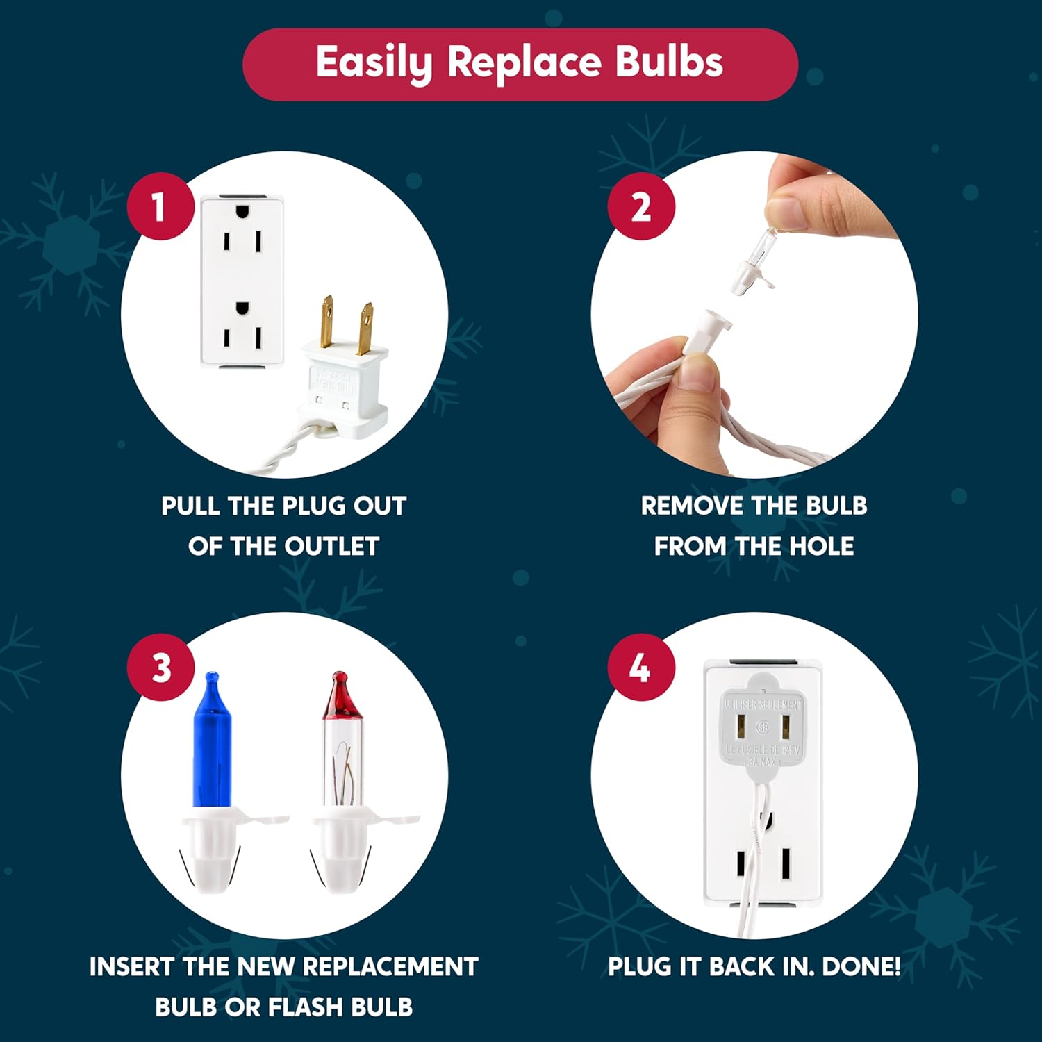 • All-Weather Durability & Independent Bulb Design Engineered for reliability, these independently wired bulbs ensure if one burns out, the rest stay lit! Designed with premium materials to endure outdoor conditions, and includes spare bulbs and fuses for easy replacement—ideal for long-lasting seasonal and year-round use.