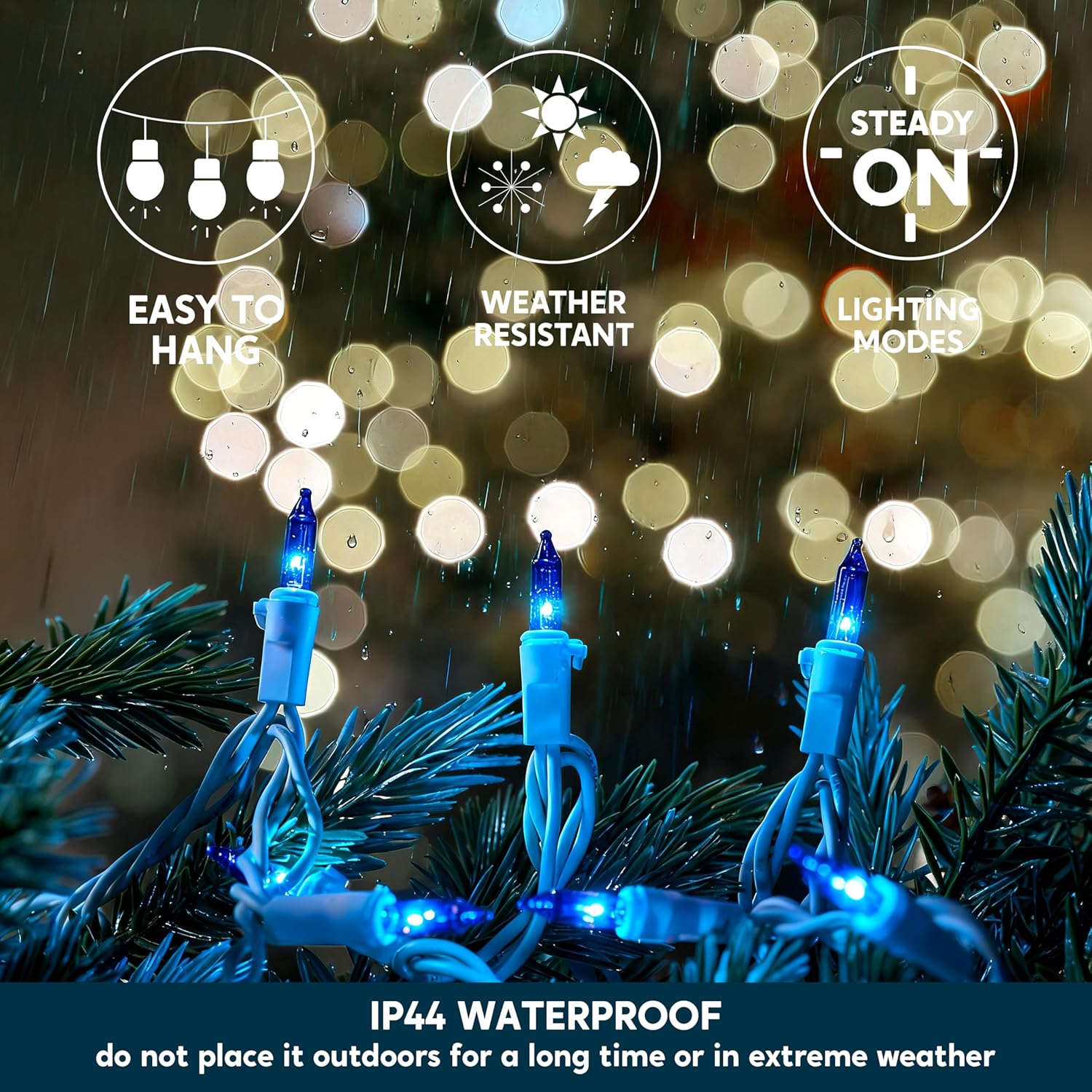 • Connect Up to 5 Sets for Expansive Displays Maximize your decorating power! These connectable Christmas lights feature end-to-end connectors, allowing you to link up to 5 sets for over 100 feet of continuous blue lighting. Perfect for creating a cohesive blue theme across large outdoor areas, staircases, or hallways without multiple power sources.