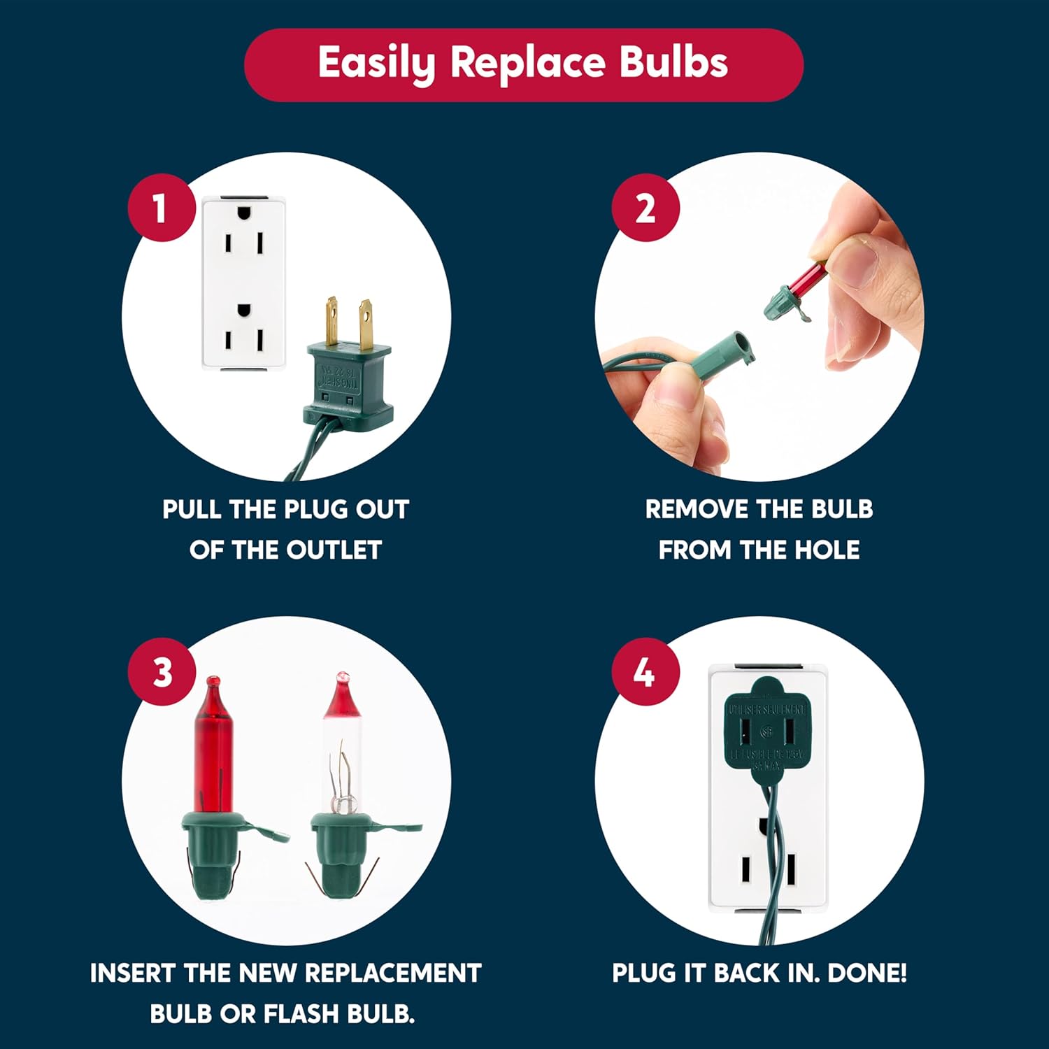 • Premium Quality. Our incandescent red Halloween string lights are designed with strong durability to accommodate harsh weather conditions. Includes spare bulbs, flashes, and fuses. If one bulb burns out, the others stay lit.