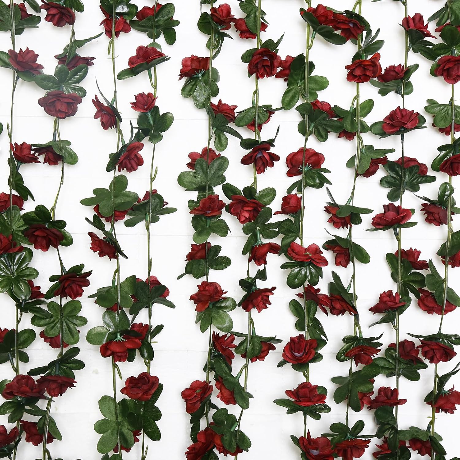 • Packaging: Includes 12 artificial flower garland, each with 45 wine red silk roses and 45 leaves