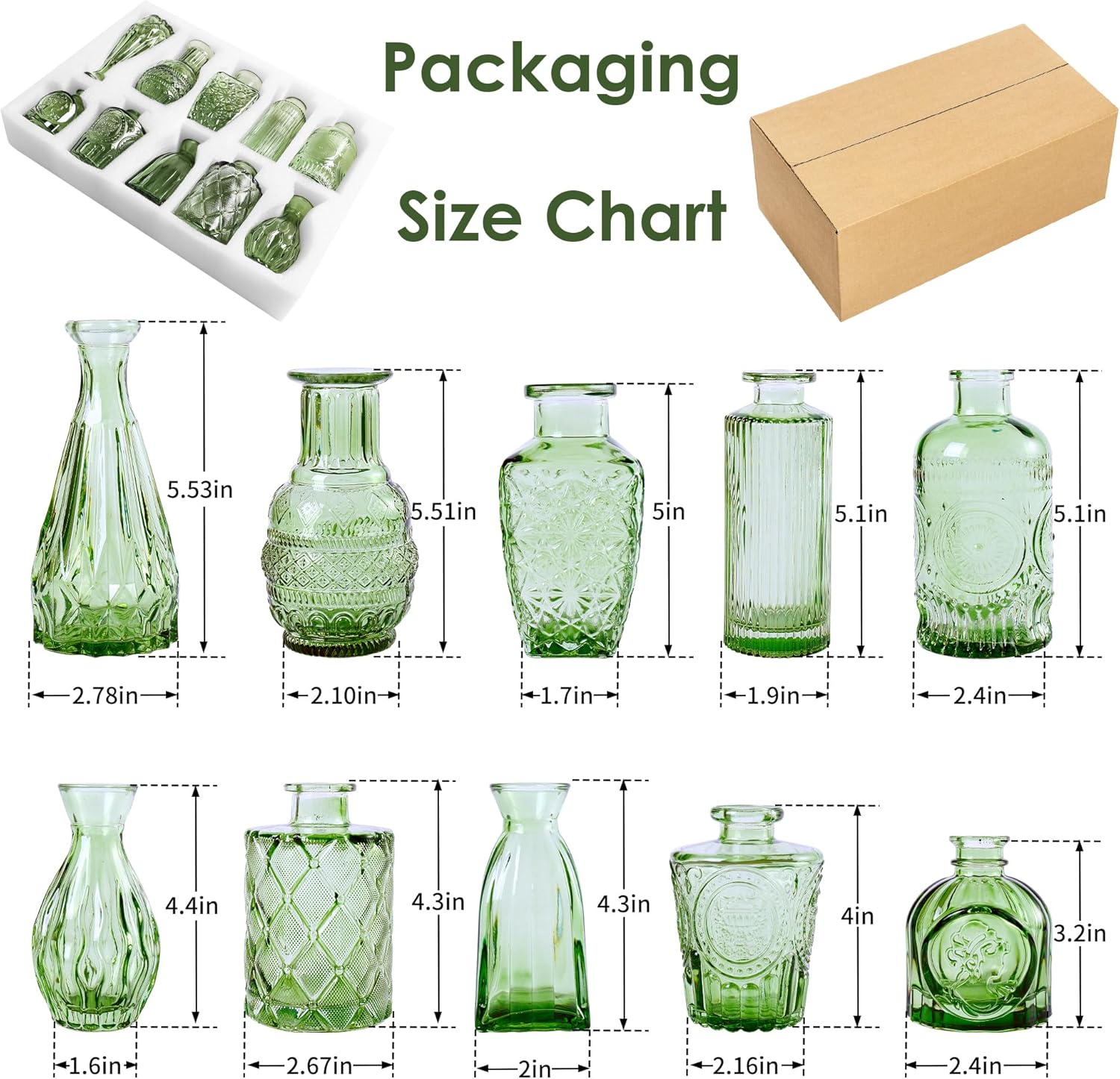• SPECIAL DESIGN: The small vases for flowers set of 10, Each vase is literally decorated with special etching patterns to further enhance its look. They are graceful and can be used for any occasion, from elegant to classic casual. They will make a great decorative highlight on your window sill, on your dining table or as a wedding centrepiece.