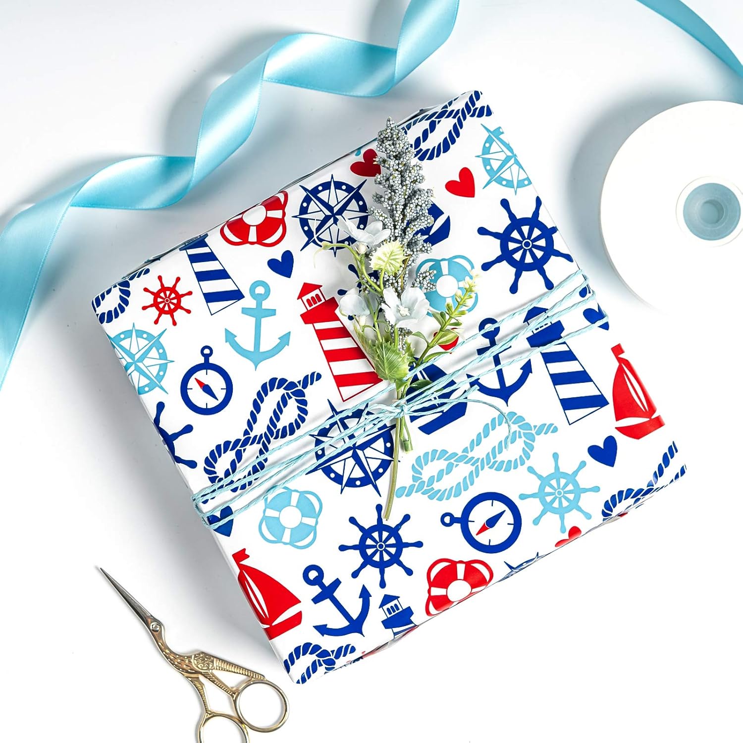 • NAUTICAL DESIGN: Multiple nautical elements printed in the paper, make your gift wrap more funny.