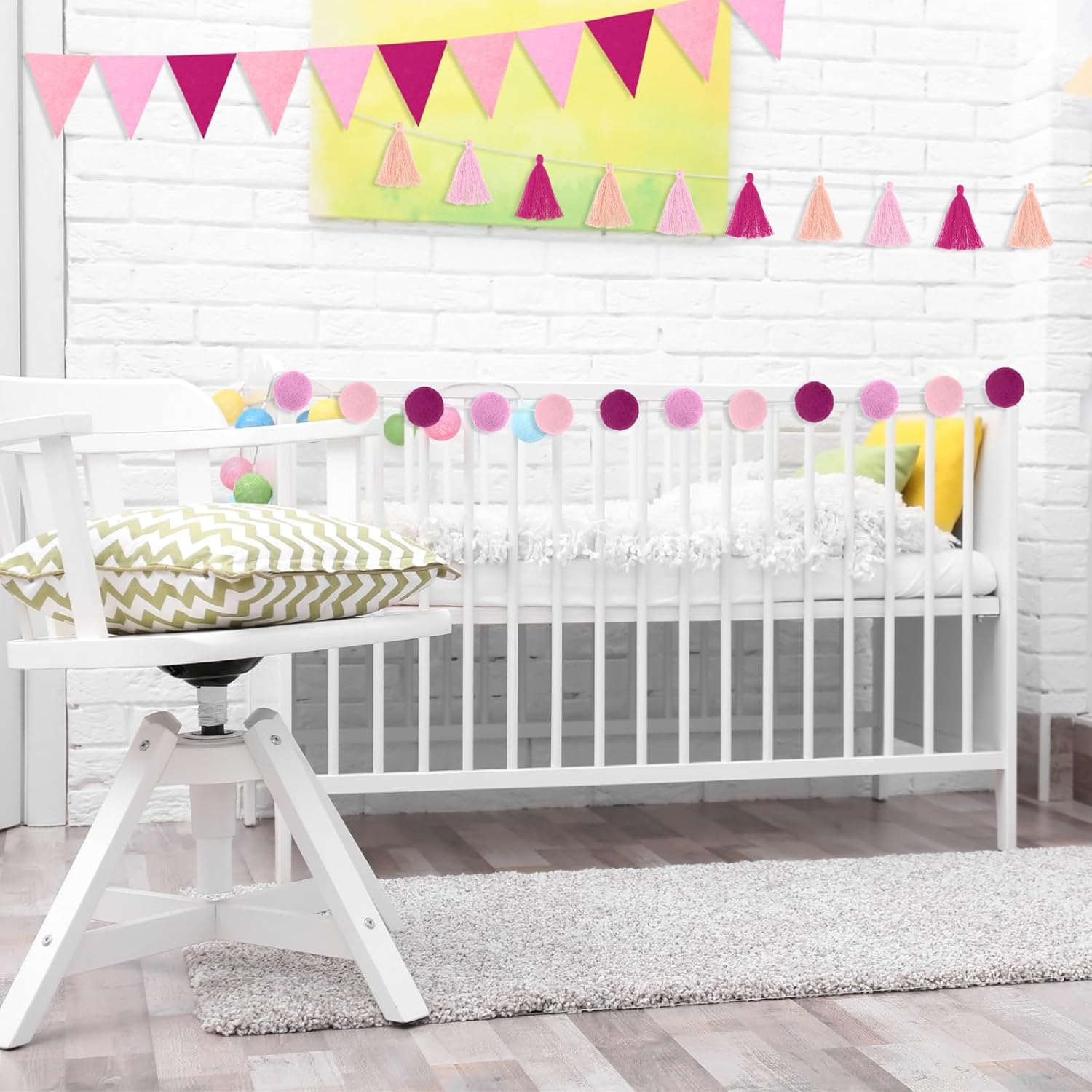 • Package Content: including 3 pieces pink garland, comes with 1 pack of tassel garland which comprises 12 pieces of tassels in total, 12 colorful felt pennant flags and a 2.8 meters rope and a threading pin, 24 pieces of balls on each ball garland, enough ornaments for you to decorate your room to be warm and beautiful