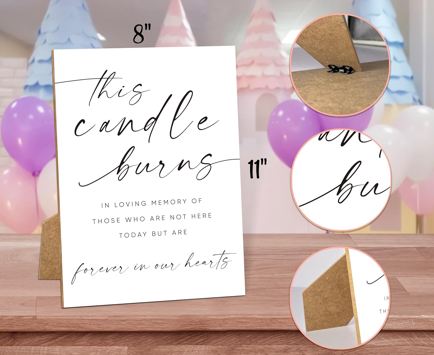 • Include: You will get a wedding memorial wooden sign with stand, the wooden sign measures 11X8 inches, single-sided printed on high quality wooden sign, with vibrant colors.
