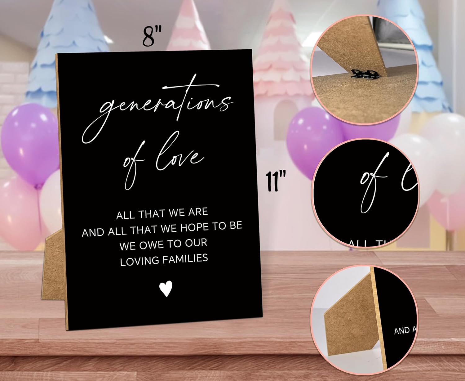 • Wooden Signs: Our wooden signs are perfect for commemorating important days for loved ones who can't be here with you. The minimalist black and white design adds a elegant feel to your home or wedding