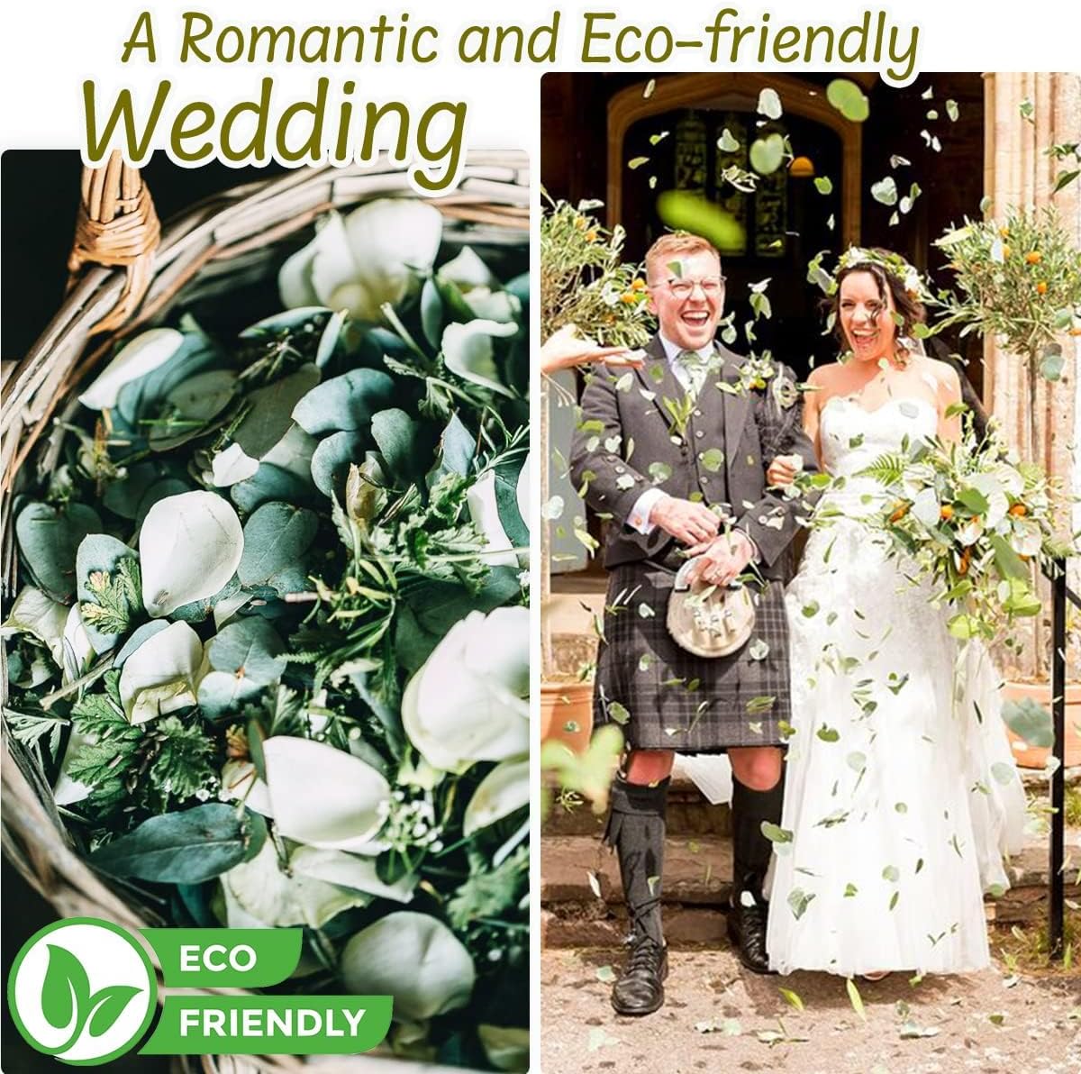 • Pure Natural Leaves: The wedding party confetti is made of eucalyptus leaves pure natural, real leaves petals and easy clear. When you sprinkle it in the air, it will form a beautiful rain of leaves, feel romantic and let yourself be in nature at the same time. You don't have to worry about polluting the environment. It is taken from nature and Merged with Nature after a period of decomposition