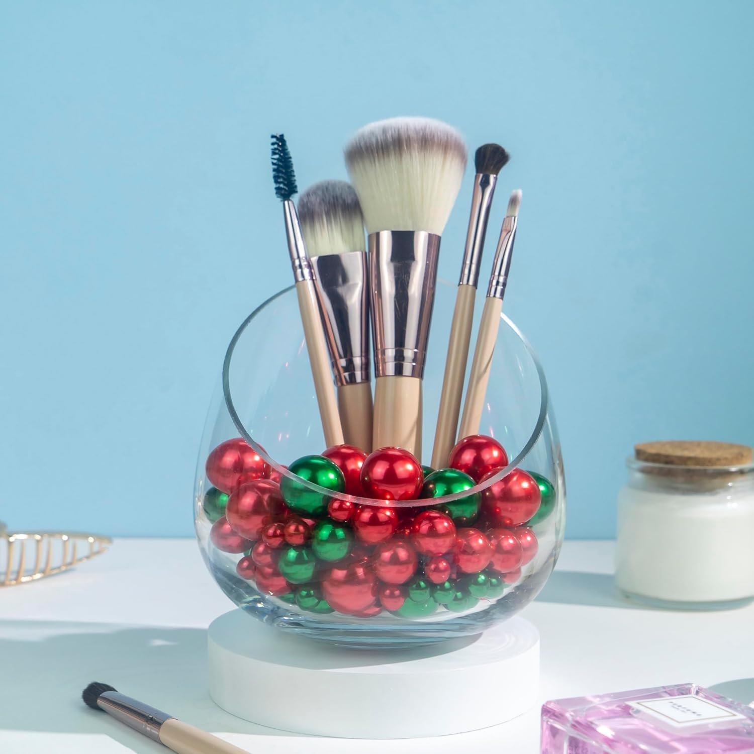 300Pcs Red&Green Polished No Hole Pearl Beads Vase Filler, Christmas Vase Filling Decorations, Plastic Pearls, Table Scatters, Wedding Home Decor, 8/14/20 mm