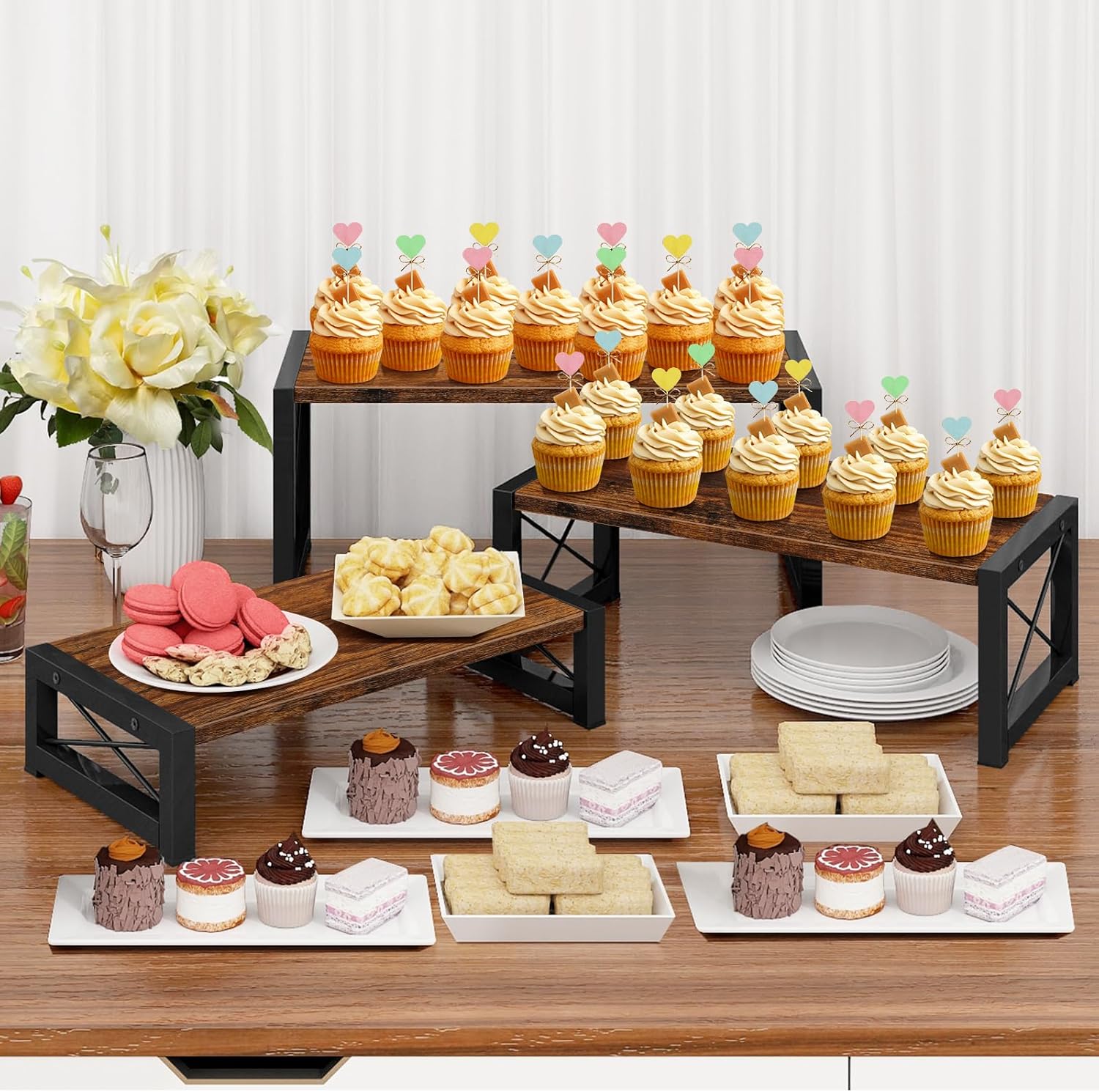 • 【Risers Display Stands】Use it to embrace the rustic charm and create a warm, inviting atmosphere that complements your events. This large 3 tier display stand can be used not only to hold and display your cakes, pastries, desserts, cupcakes, cookies and fruits, and scented candles but also small sculptures, small lights, small plants, pottery, etc. The unique design makes it perfect for dessert tables, parties, or retail displays.