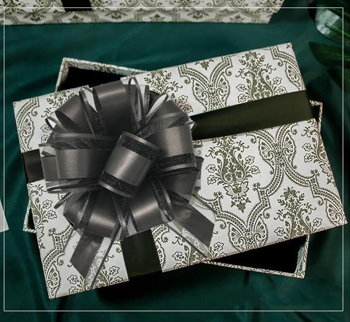 6 Pieces Large Pull Bows, 6 inches, Organza Fabric, Black, Wedding, Christmas, Birthday, Valentine's Day, Gift Wrapping, Party Decoration, Easy to Use