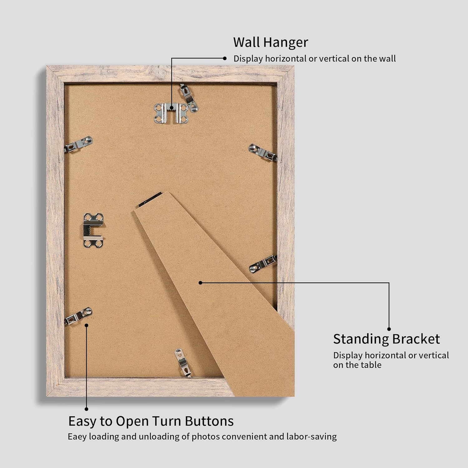 • A Variety of Display Methods: Our picture frames could be hang vertically or horizontally, placed on a desk by their easel-back, or hang on the wall with the mounted hanging hanger.