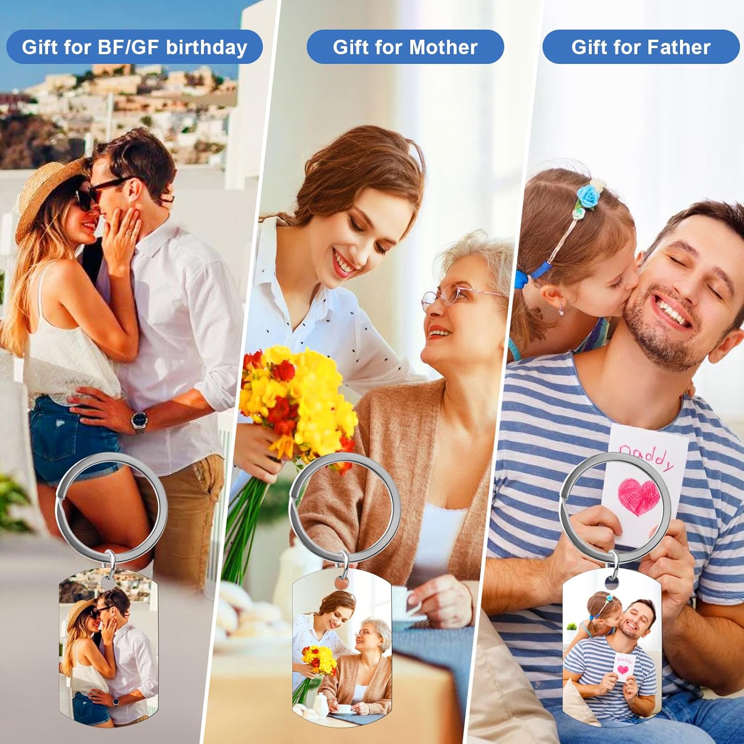 • Double-Sided Custom Keychain With Photo and Text: Crafted from premium stainless steel, this keychain is designed to hold cherished memories. Upload your favorite picture, whether it's from a personal album, graduation, or a family gathering, on the front. Add text, names, dates, or numbers to the back to convey your affection for your loved ones, including your girlfriend, boyfriend, wife , husband, parents, and friends