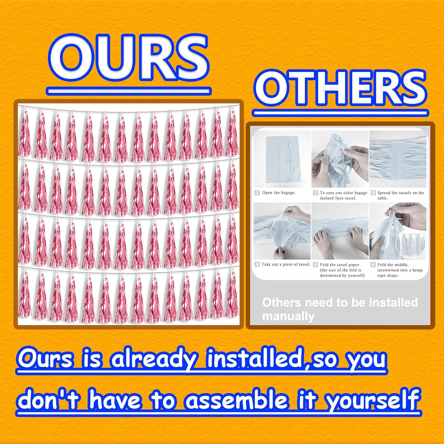 • 【Package Includes】The total length of the pink birthday tassels banner is 40 feet, divided into 4 strips, each 10 feet long. Each banner contains 15 tassels, and each tassel measures 14 inches, for birthday decorations many occasions uitable for Patriotic display, Homecoming Float, Christmas Float, ecorative metal trailers, graduation floats etc