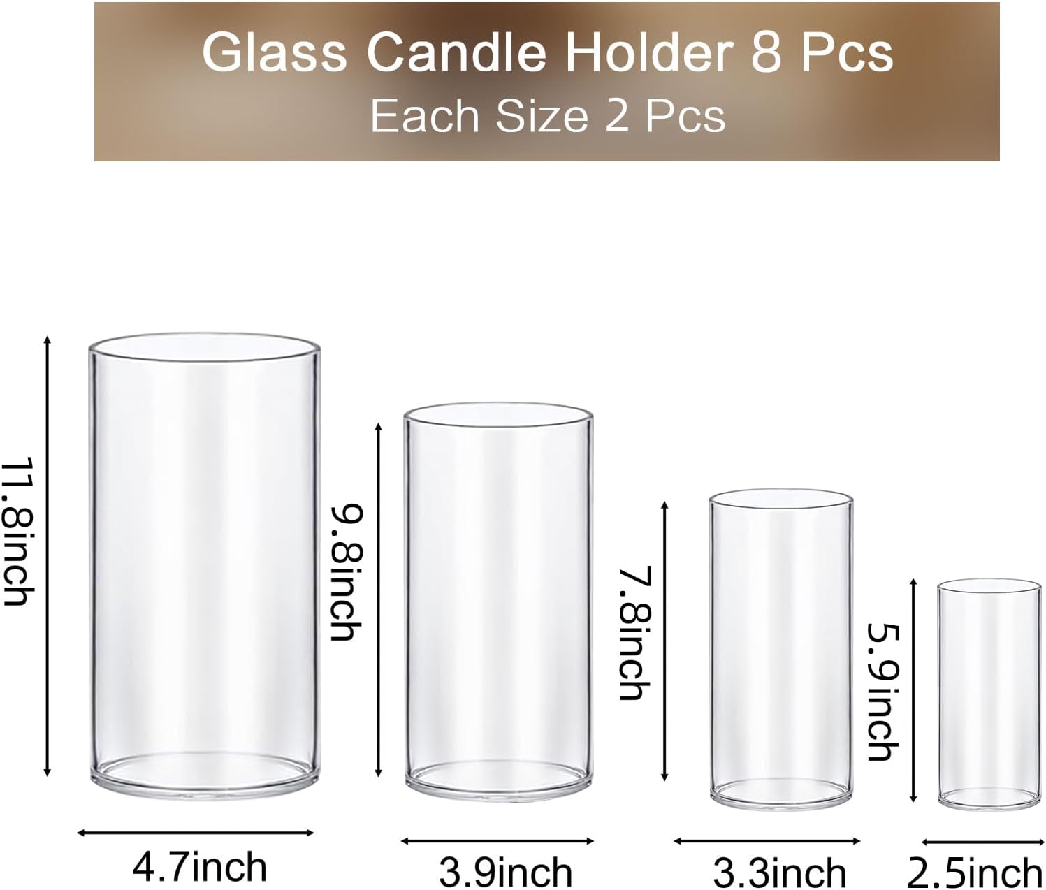 PHOSPHOR 8 PCS Glass Candle Holder, Hurricane Candle Hoder, Glass Pillar Candle Holder, Clear Cylinder Candleholder Cylinder Vase for Centerpieces Wedding Party Decoration