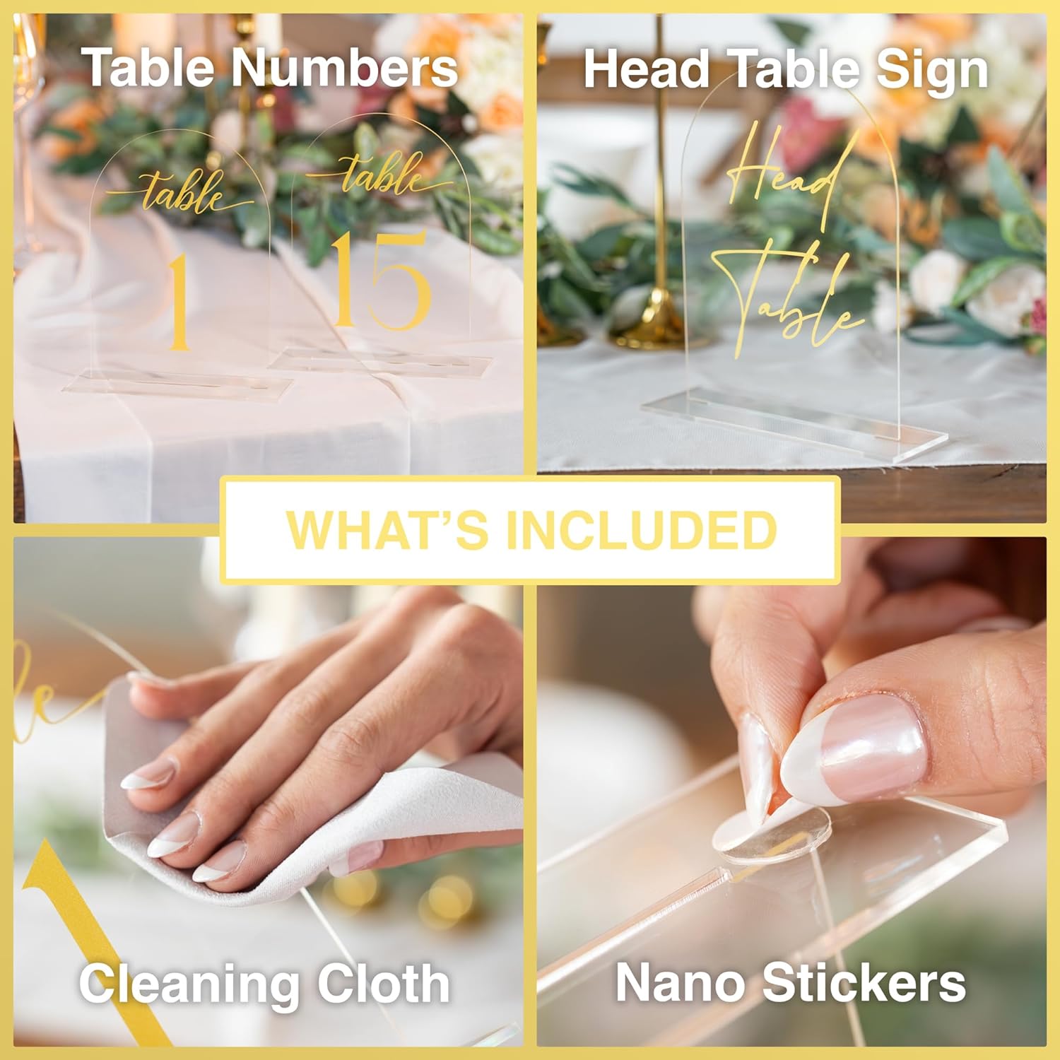 • โžก๏ธ ๐˜พ๐™Š๐™‰๐™Ž๐™๐™๐™๐˜พ๐™๐™€๐˜ฟ ๐™’๐™„๐™๐™ƒ ๐™Œ๐™๐˜ผ๐™‡๐™„๐™๐™” ๐˜ผ๐˜พ๐™๐™”๐™‡๐™„๐˜พ: Our ultra-durable acrylic wedding signs for seating chart come in four styles: 5" x 7" Clear with Gold Print, Clear with White Print, Black with White Print or Frosted with White Print, in Numbers 1-10, Numbers 1-15 or Numbers 1-20; Plus, all of our table number sets come with a Head Table Sign and a Gift table Sign