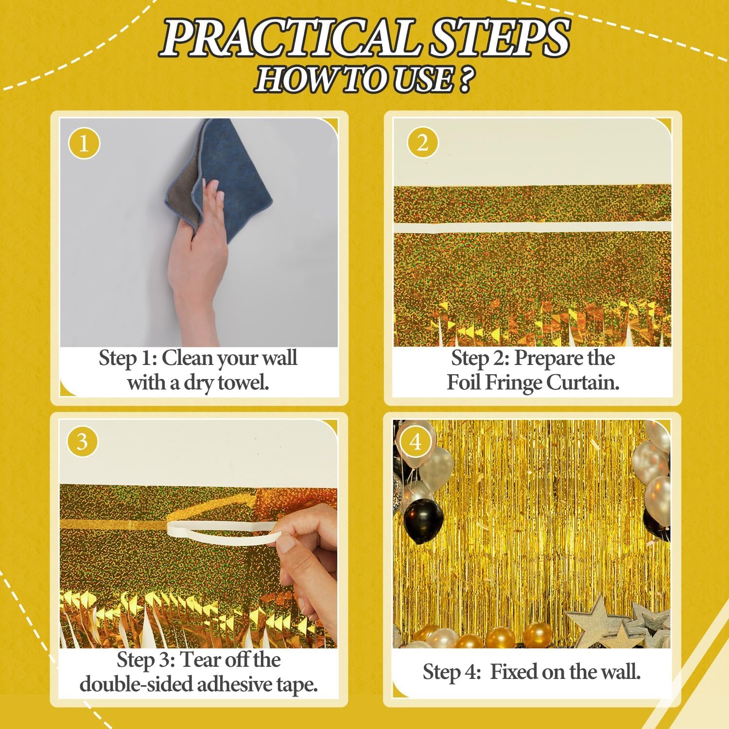 • 【Easy and Convenient Installation】These foil fringe curtains are easy to install and can be quickly hung on smooth surfaces using the included double-sided adhesive tape. No extra tools or materials required.