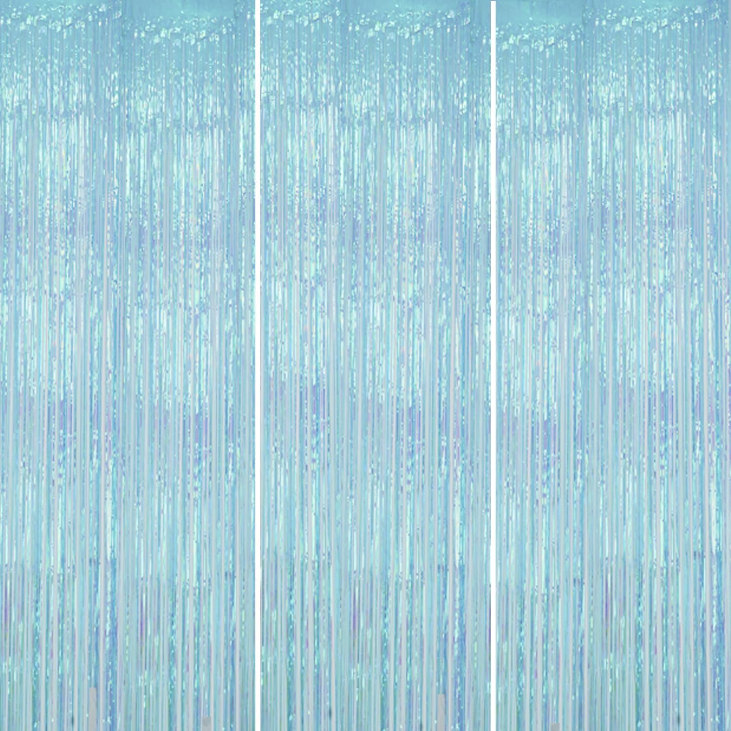3 Pack Foil Fringe Backdrop - Transparent Blue Shiny Tinsel Curtains for Party Decoration/Photo Booth Props - 3.3x8.2FT Metallic Foil Backdrop for Birthday, Wedding, Graduation, Christmas