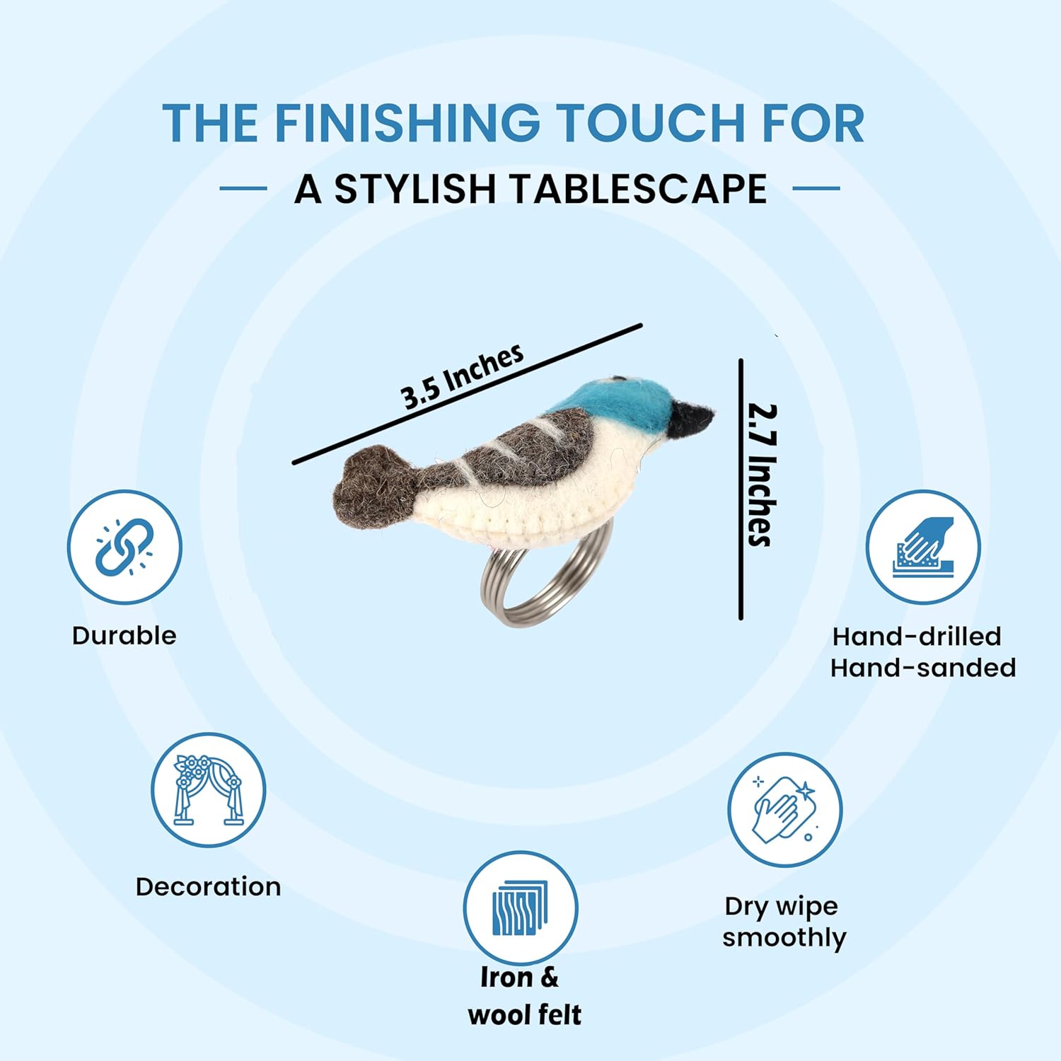 • MATERIALS: Made from soft wool felt for the bird shape, combined with a durable iron alloy ring.