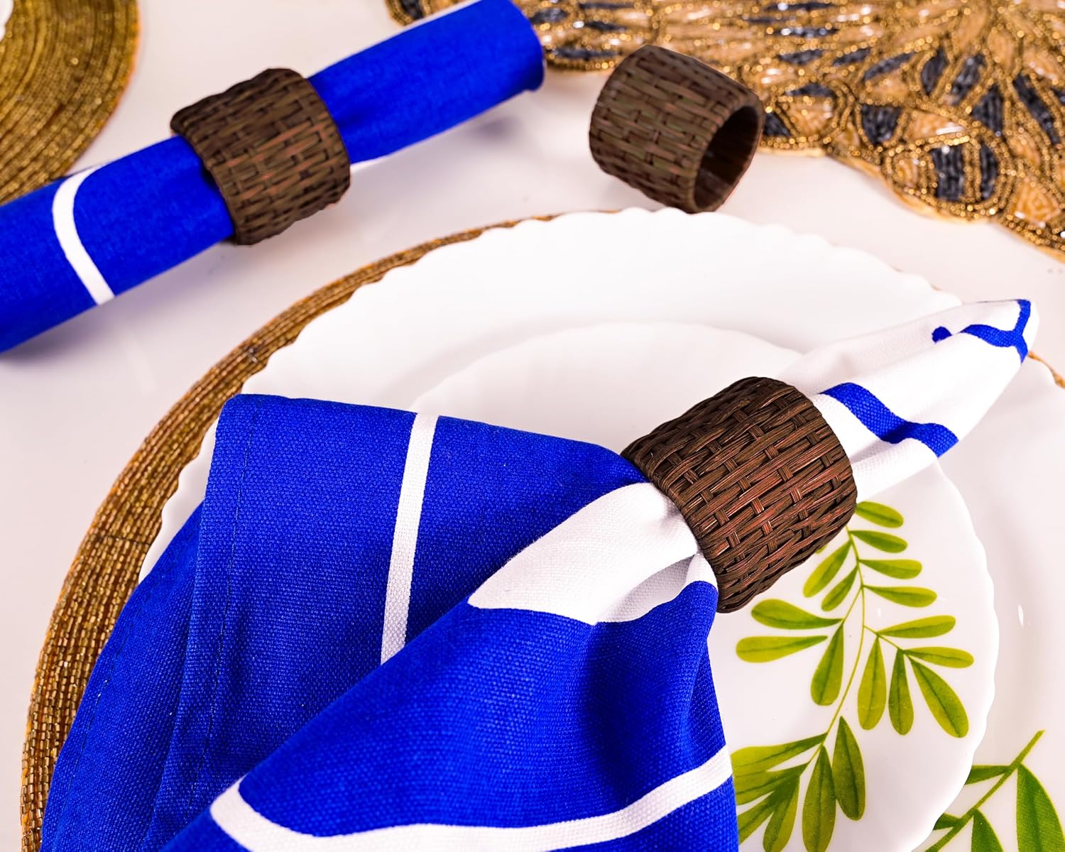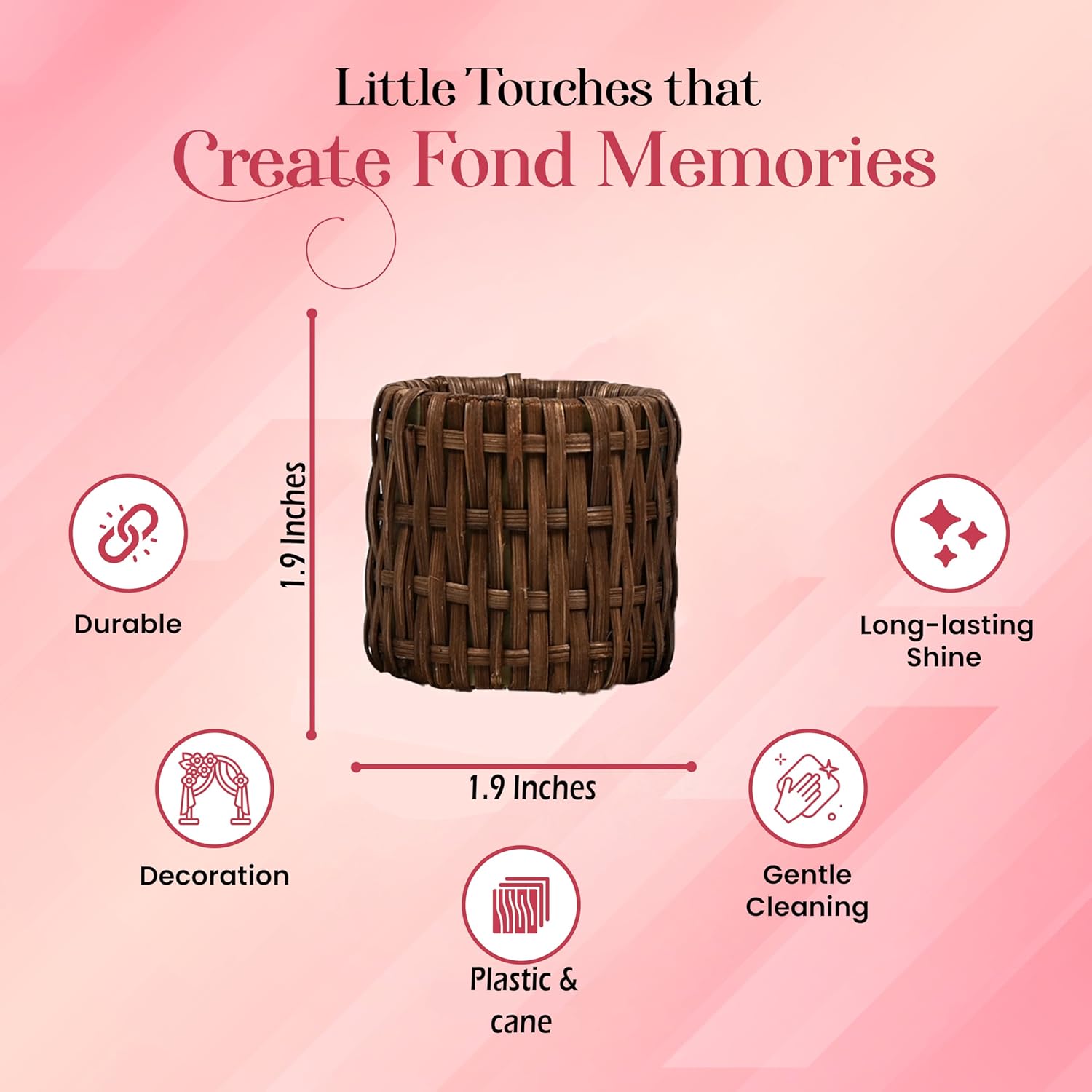 • ✅ PERFECT SIZE & PACK: Set of 12 brown cane napkin rings, measuring 2 x 2 x 1.75 inches, ideal for any dining setup.