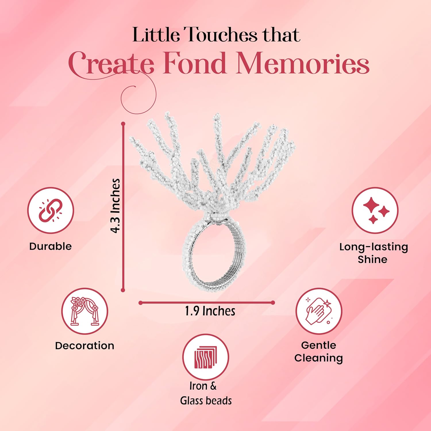 Beaded Napkin Rings Set for Dining Table - Elegant Pearl White Glass Beads with Silver Finish – Perfect for Weddings, Coastal Décor, Parties & Holiday Entertaining (White) - CLEENTABLE