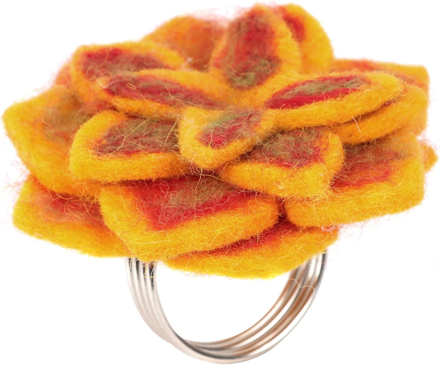 Wool Felt Napkin Ring Set of 8 - Elegant Flower Spring & Farmhouse Table Décor with Silver Electroplated Metal Alloy Base - Perfect for Banquet Table Decor & Daily Use (Multi) - CLEENTABLE