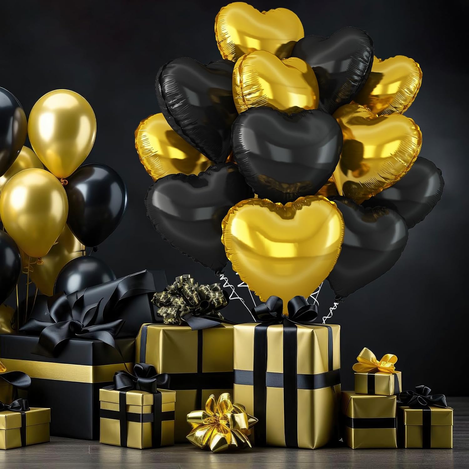 • 【WIDELY APPLICATION】This black gold heart balloon can be used for a variety of occasions,such as birthday,Father's Day,anniversary,Valentine's Day,baby shower,gender reveal,weddings,engagement,bridal shower,marriage proposals and other parties,can also be used as a photo background,etc.Make a deep impression on the party guests.