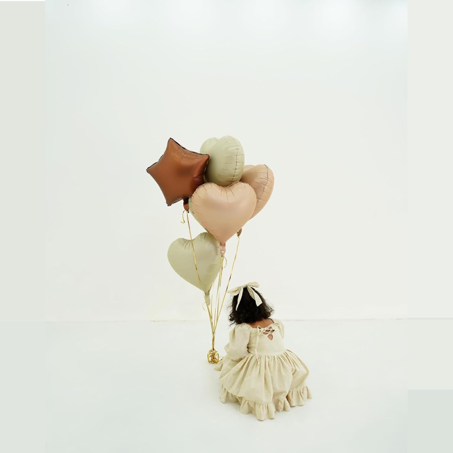 • 【12PCS HEART BALLOONS】Package include 6pcs cream white heart foil balloons,6pcs caramel heart foil balloons,1pc straw.Large enough to help you better decorate your party.
